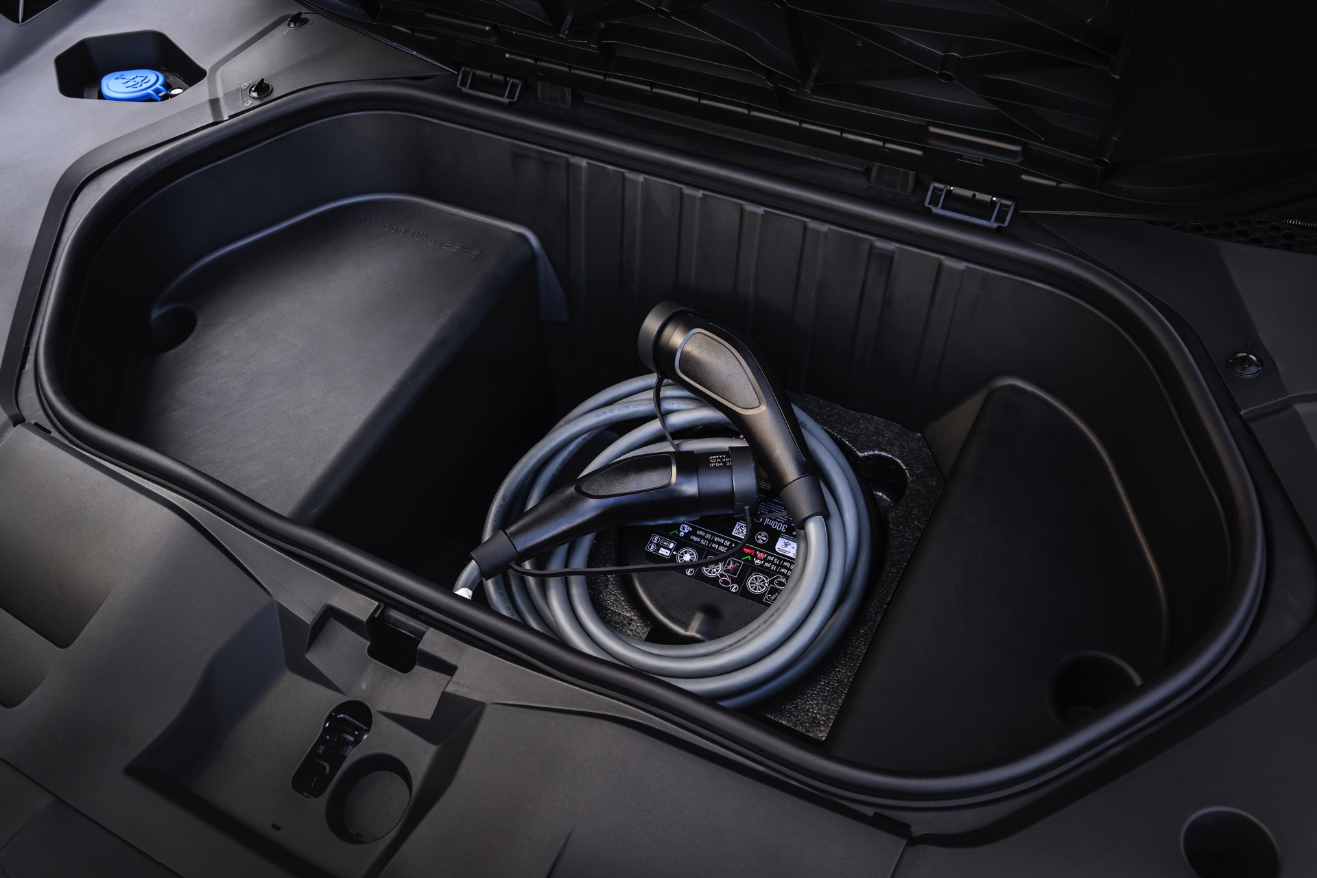 Auf den Fotos zum Interieur des Elektro-SUV erhalten wir auch detaillierte Eindrücke vom Finish der Bedienelemente auf der Mittelkonsole und in den Türen, einen Blick in den 520 bis 1.750 Liter großen Kofferraum mit der serienmäßig zweigeteilt umklappbaren Rückbank sowie weitere Bilder vom 58 Liter fassenden Frunk unter der Fronthaube, der sich beispielsweise für den Transport des Ladekabels anbietet.