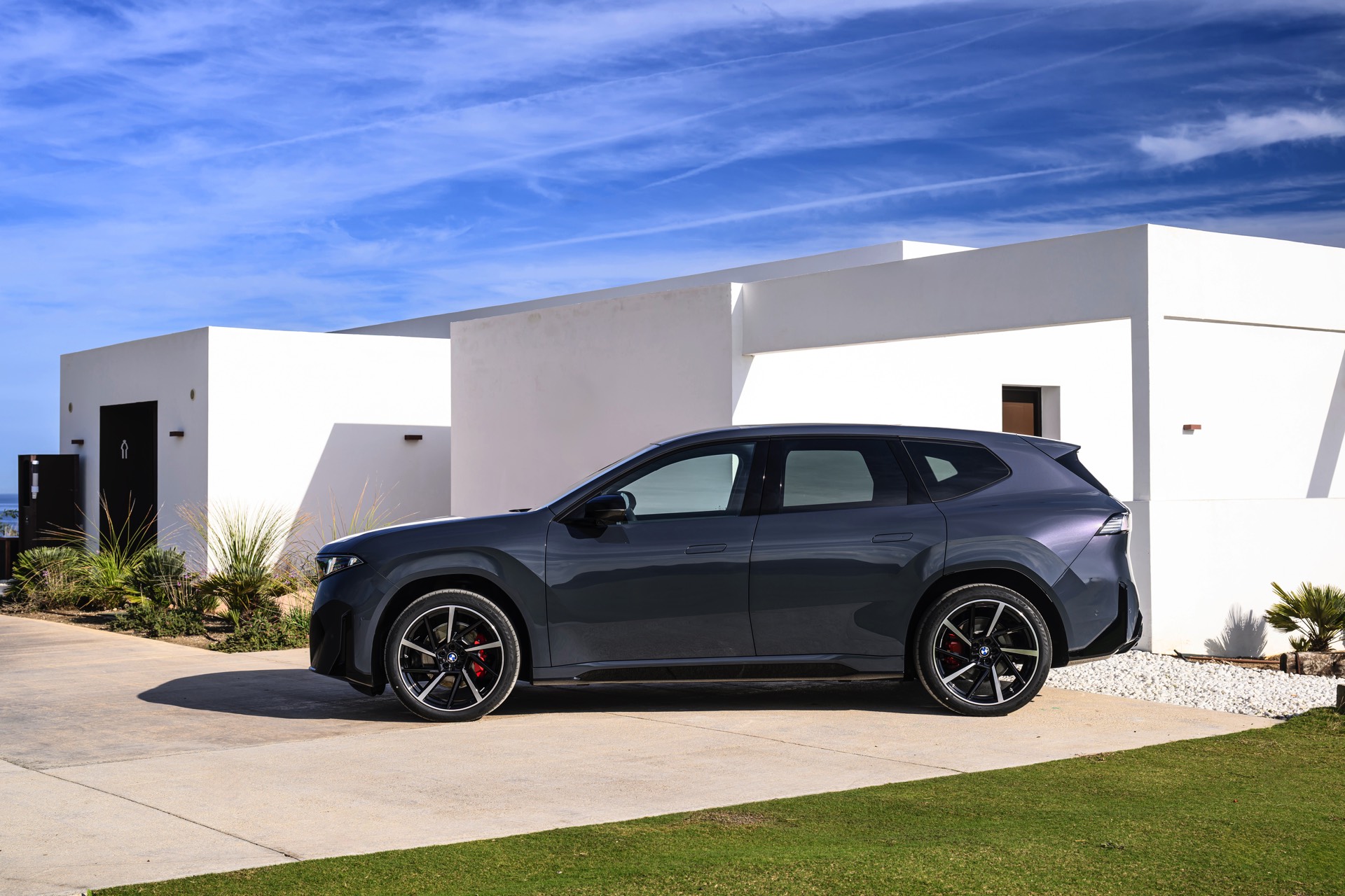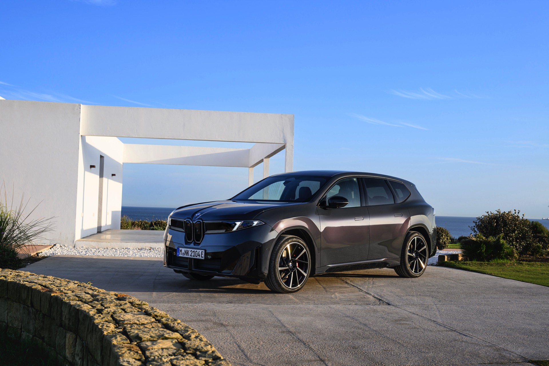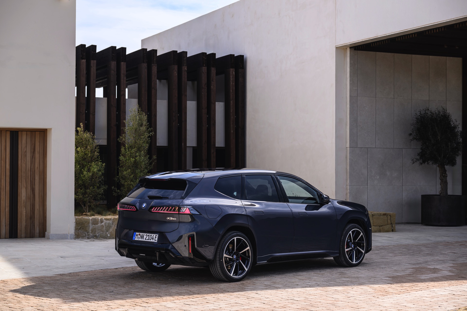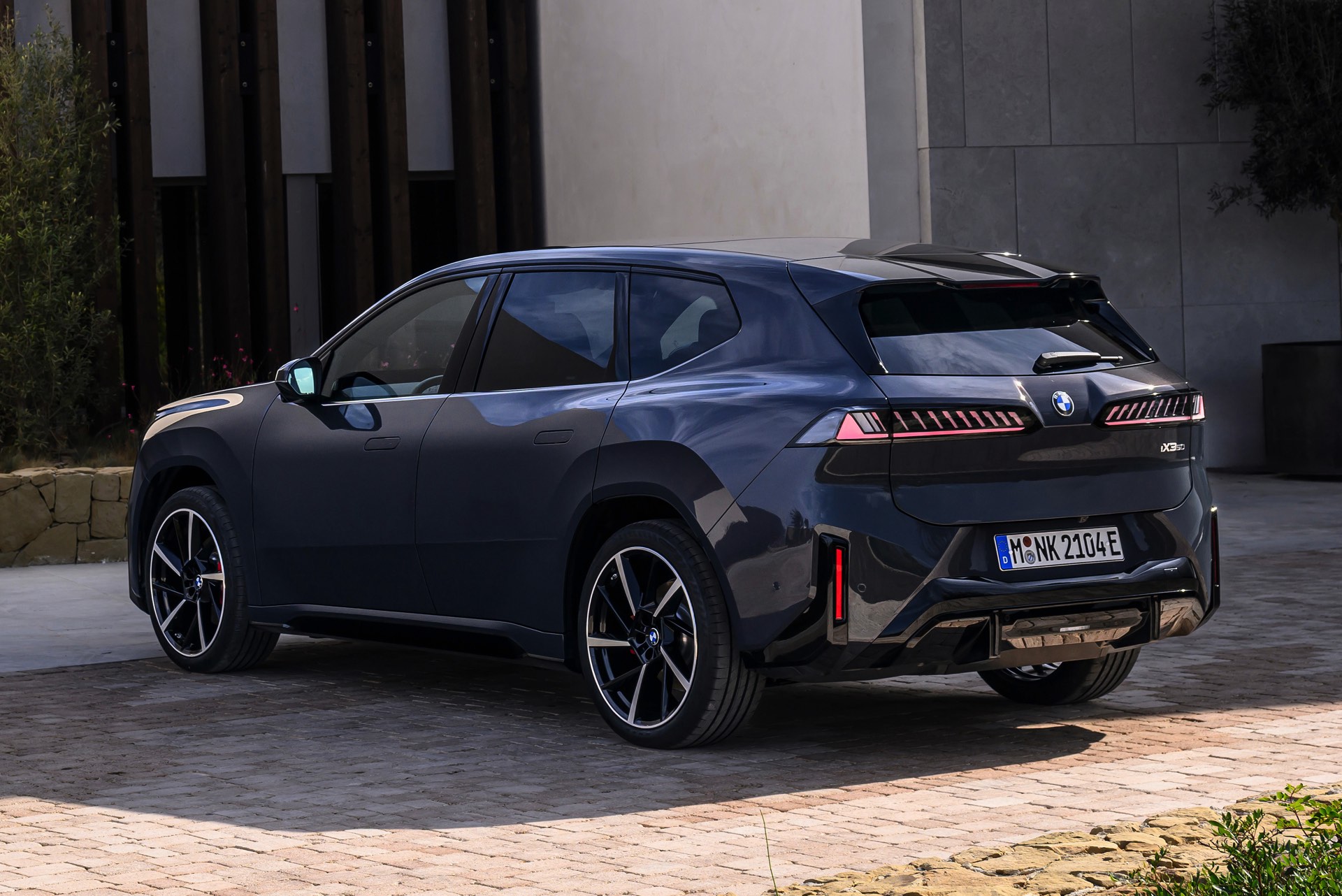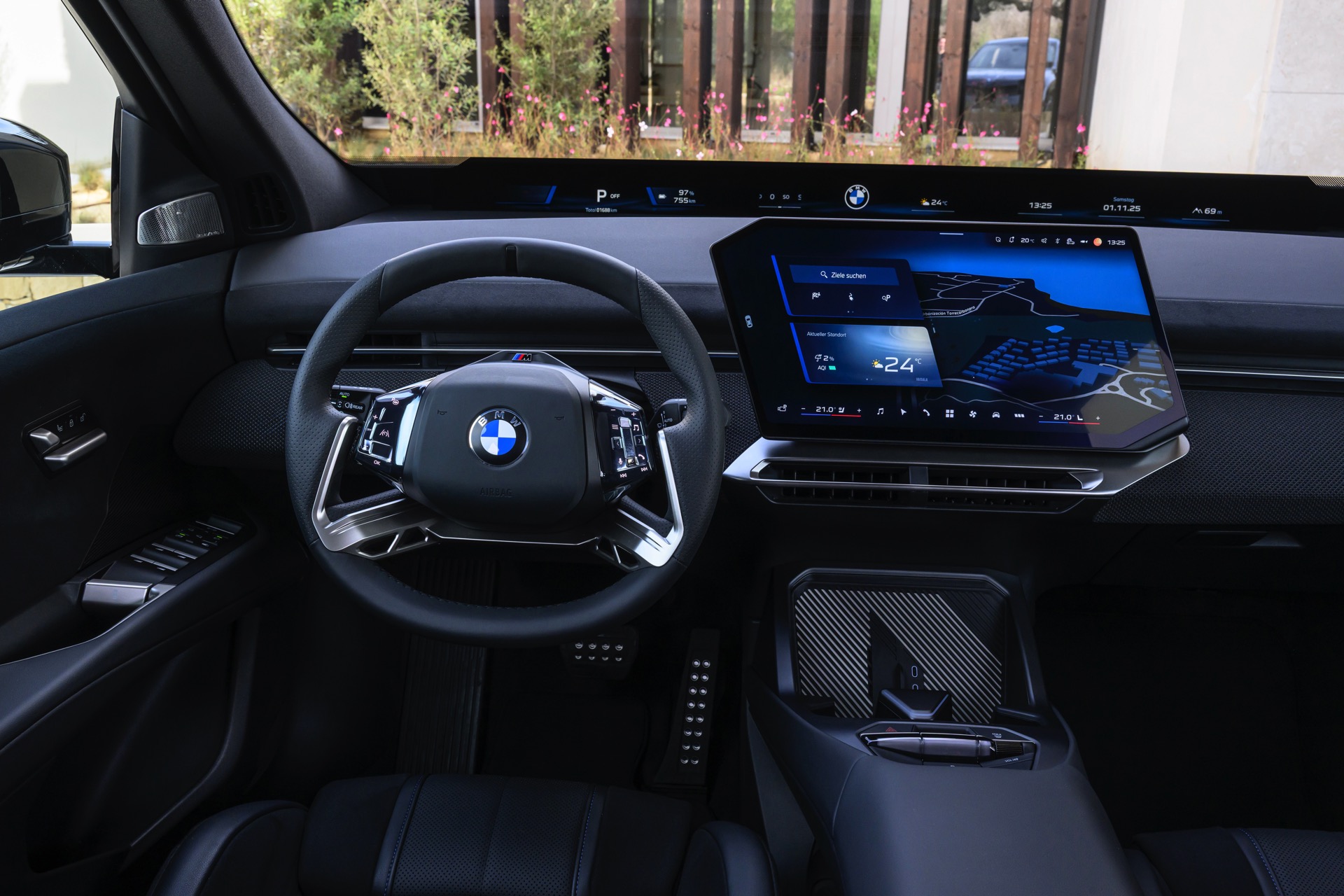Im Innenraum komt das Pro-Paket mit M Lenkrad, M Sportsitzen und M Sicherheitsgurten, andere sportliche Details sind bereits vom regulären M Paket abgedeckt. Mit Blick auf die Reihe hochwertiger Sonderausstattungen überrascht es nicht, dass der Grundpreis des iX3 allein durch das M Sportpaket Pro von 68.900 auf 75.400 Euro klettert. Weitere 950 Euro Aufpreis kosten die gezeigten Leichtmetallräder Sternspeiche 1050 M Bicolor im 21 Zoll-Format, die im Gegensatz zu den meisten anderen Felgen zumindest zum Marktstart nicht mit unterschiedlichen Bereifungs-Optionen und folglich auch nicht mit Sportreifen bestellt werden können.