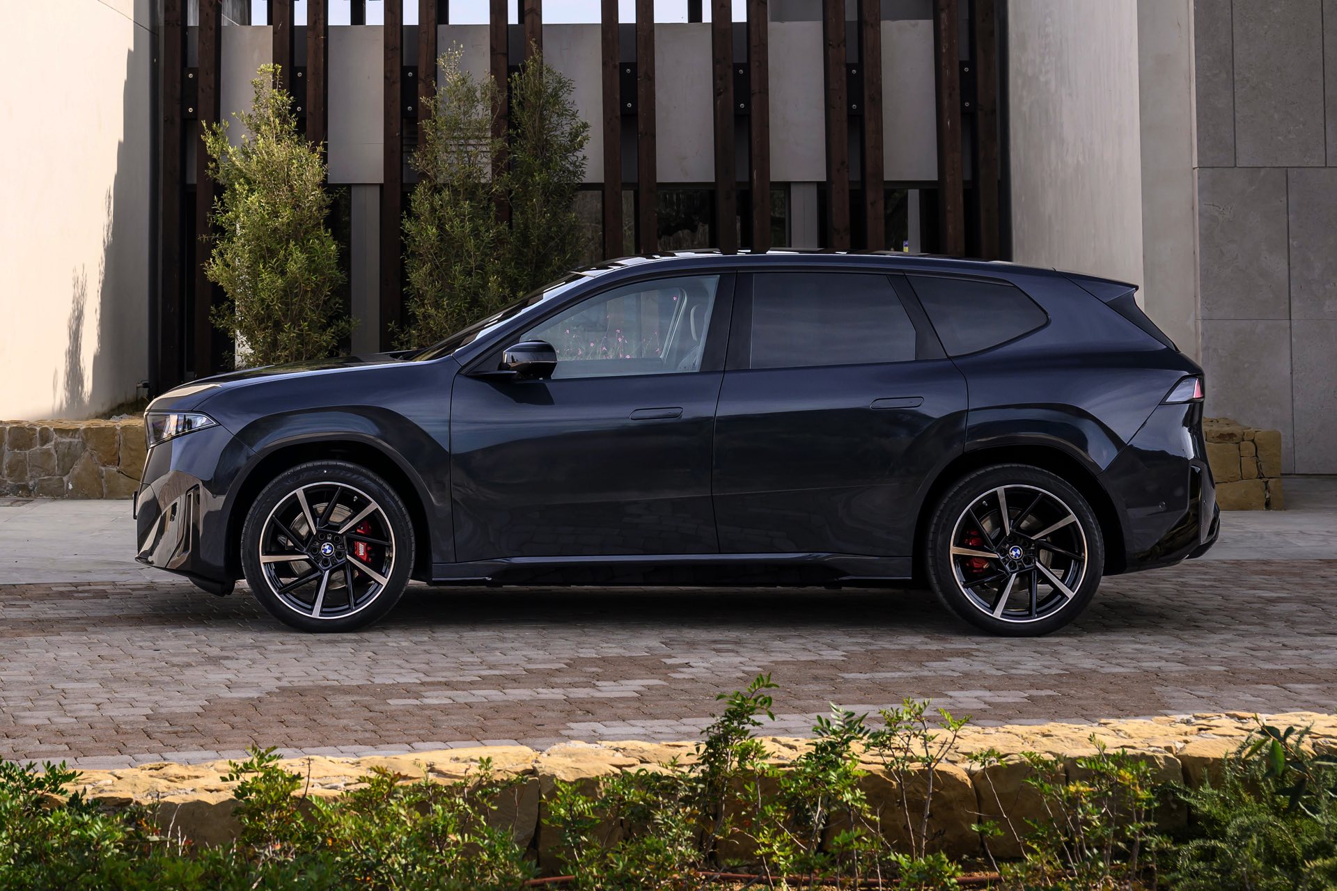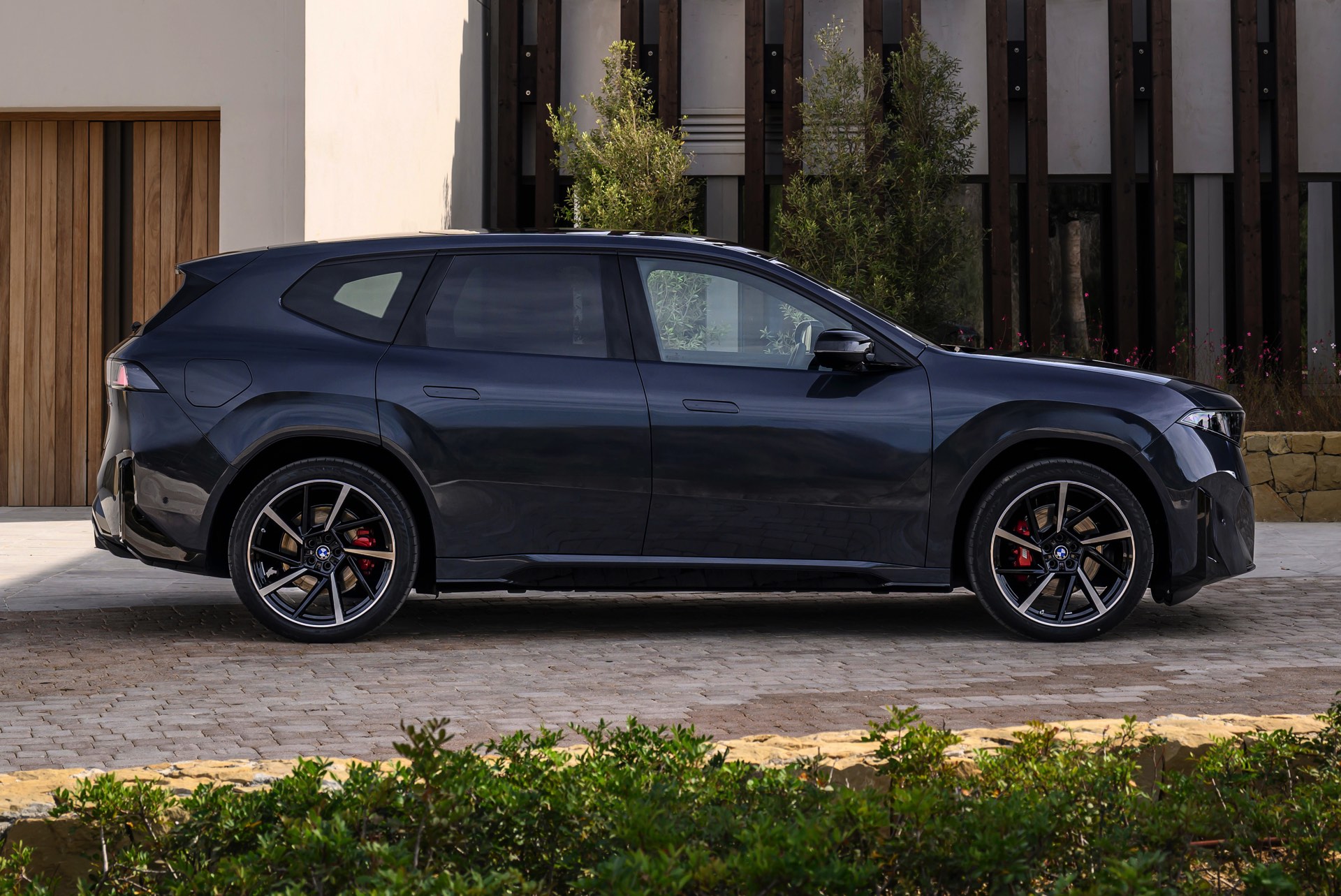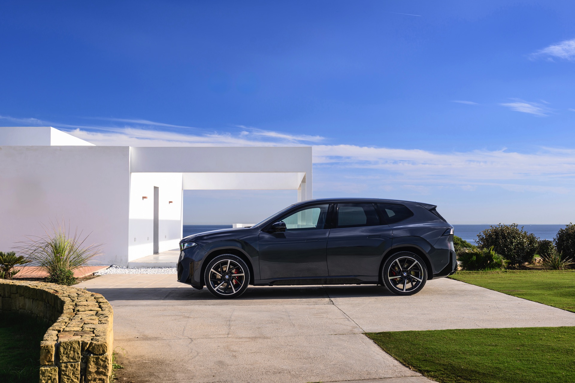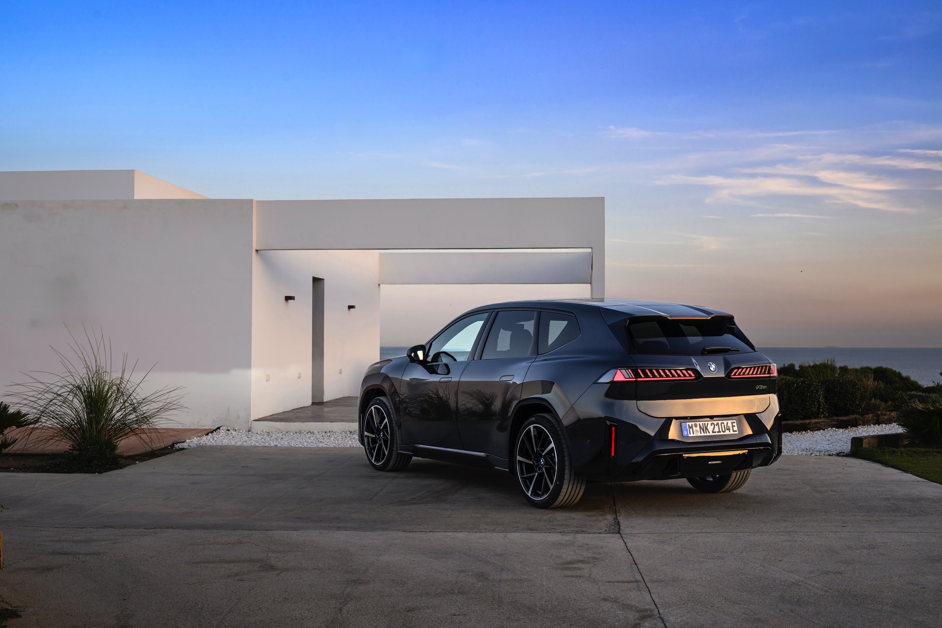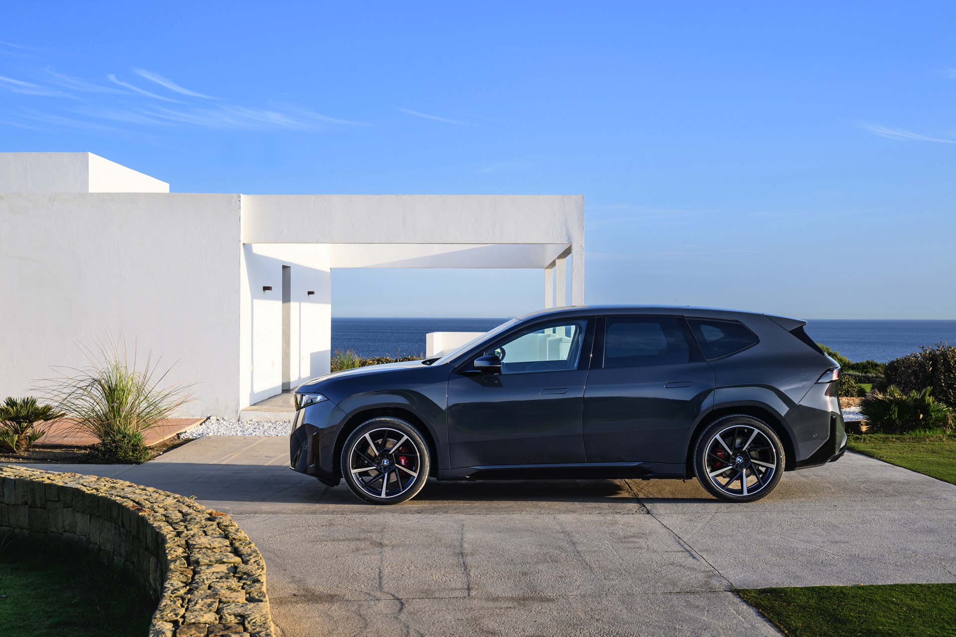 Im Innenraum komt das Pro-Paket mit M Lenkrad, M Sportsitzen und M Sicherheitsgurten, andere sportliche Details sind bereits vom regulären M Paket abgedeckt. Mit Blick auf die Reihe hochwertiger Sonderausstattungen überrascht es nicht, dass der Grundpreis des iX3 allein durch das M Sportpaket Pro von 68.900 auf 75.400 Euro klettert. Weitere 950 Euro Aufpreis kosten die gezeigten Leichtmetallräder Sternspeiche 1050 M Bicolor im 21 Zoll-Format, die im Gegensatz zu den meisten anderen Felgen zumindest zum Marktstart nicht mit unterschiedlichen Bereifungs-Optionen und folglich auch nicht mit Sportreifen bestellt werden können.