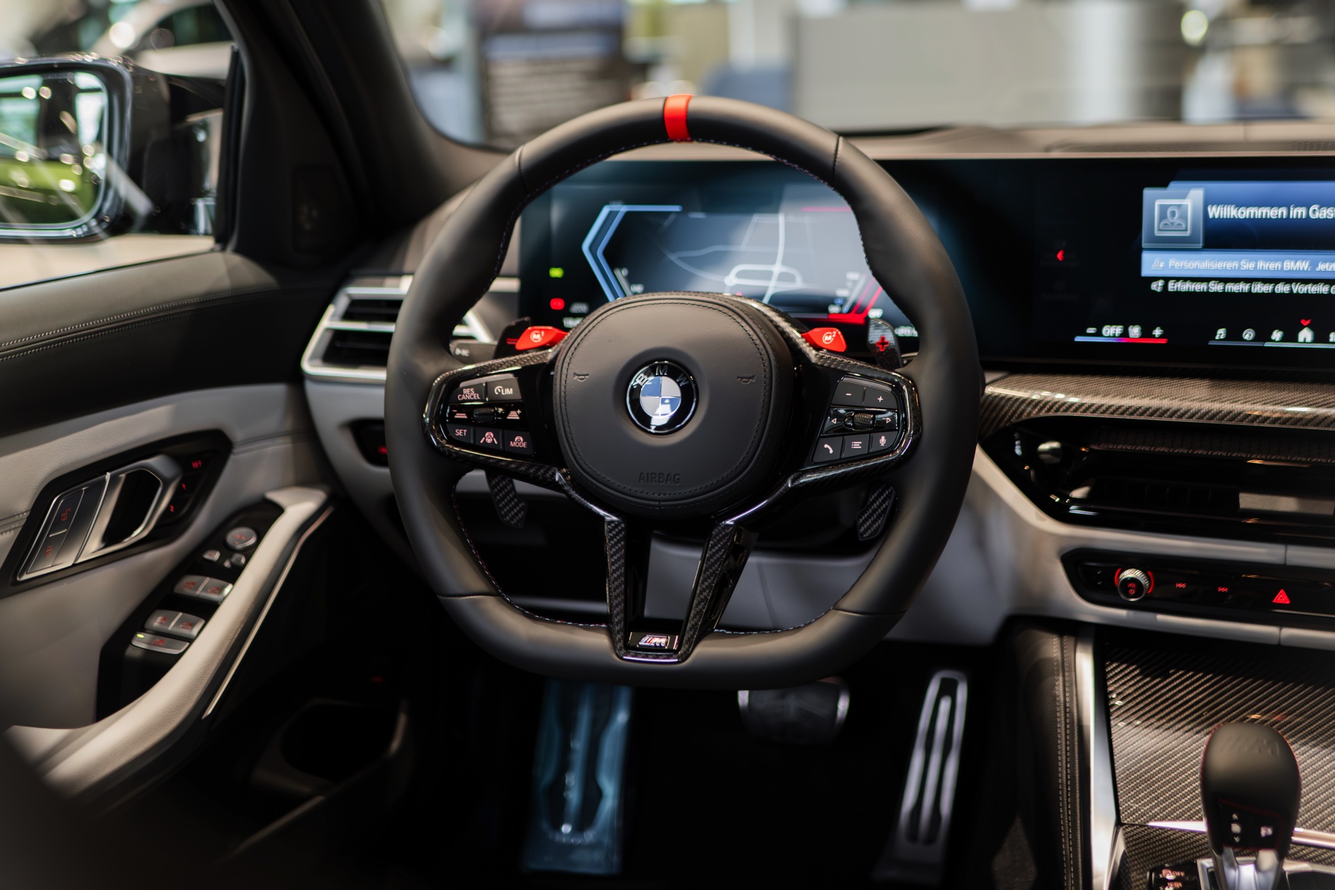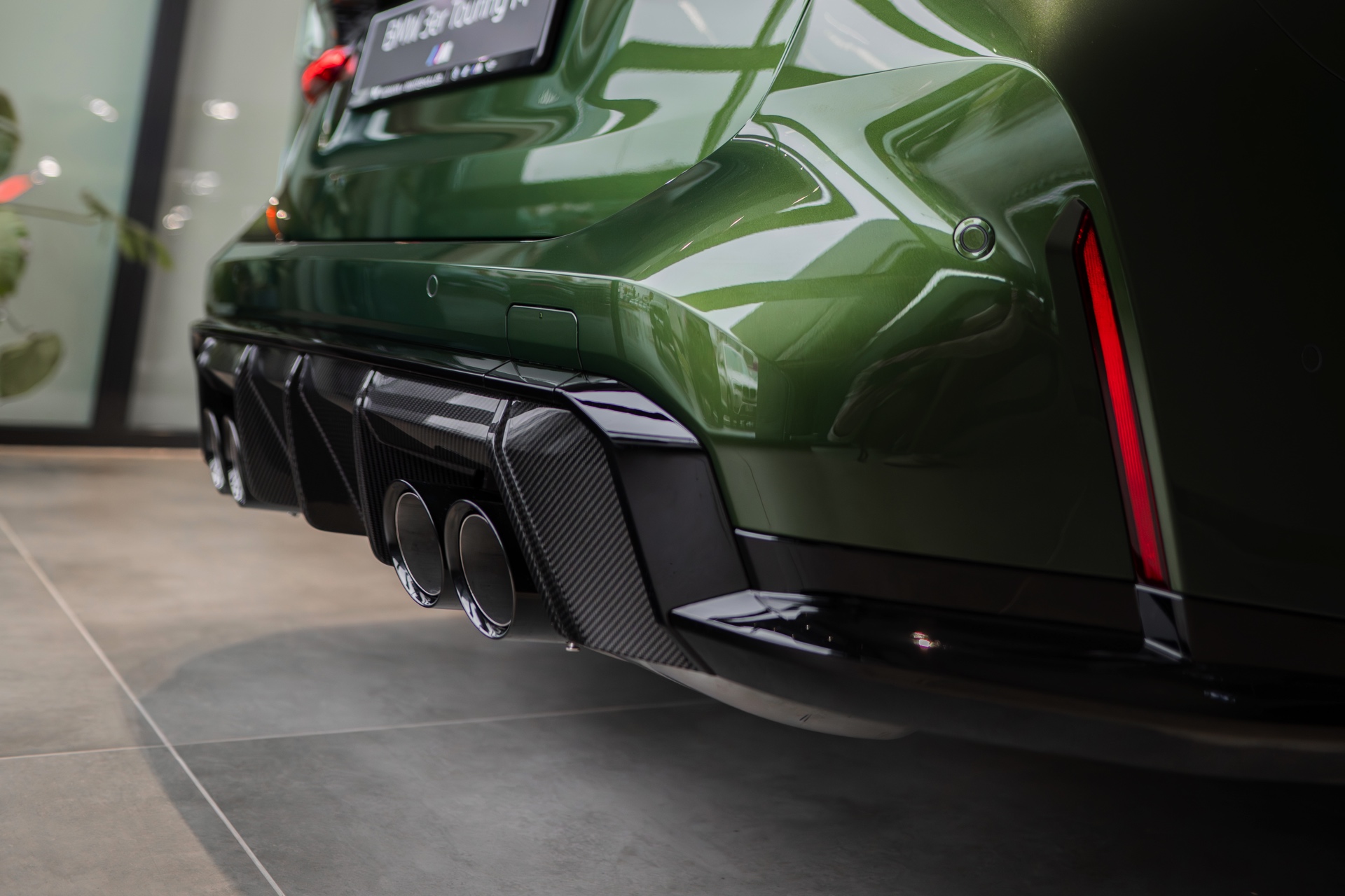 Neben der markanten Sonderwunsch-Lackierung und den schwarzen Schmiederädern Doppelspeiche 826 M bestimmt vor allem Carbon den Look des Community-Projekts: Dank des M Carbon Exterieurpakets stellt der 530 PS starke BMW M3 Touring (G81 LCI) den Hightech-Werkstoff unter anderem an den Außenspiegel-Kappen und am Diffusor-Einsatz zur Schau und betont damit den extrem sportlichen Anspruch. Mitbestellt wurde auch das Ultimate Package, das eine Vielzahl hochwertiger Sonderausstattungen zum Paketpreis von 8.110 Euro bündelt.