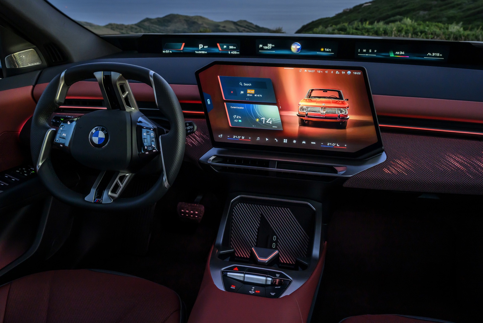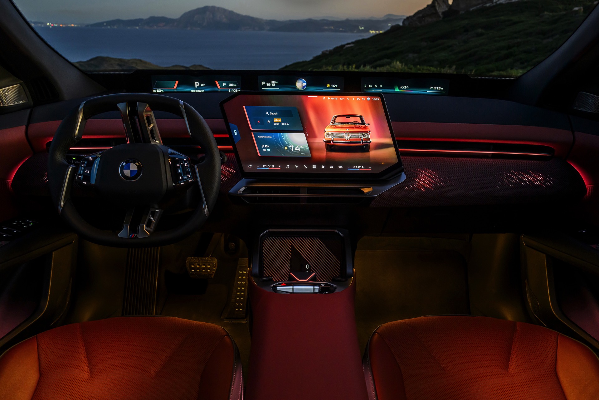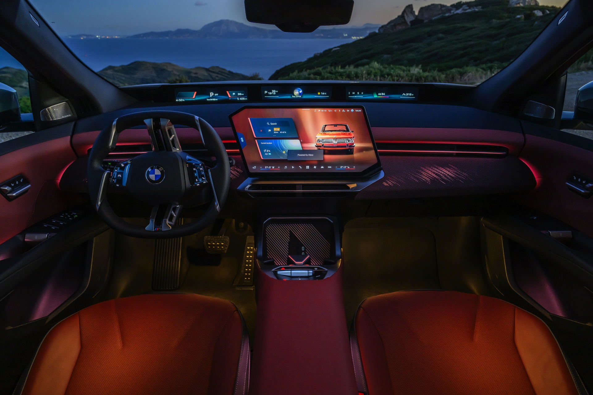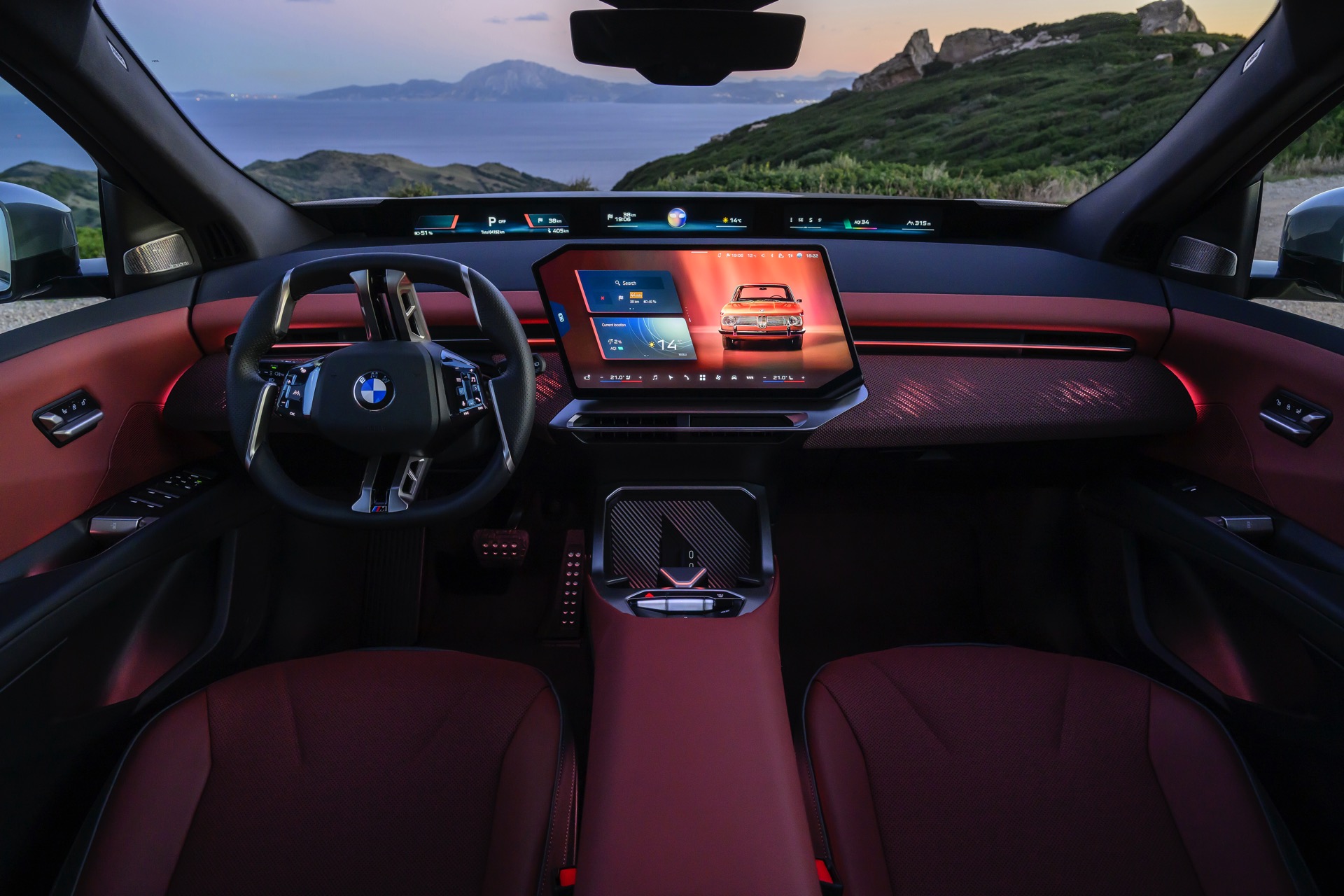 Die Fotos sind zwar offenbar an der Südspitze Spaniens nahe Gibraltar entstanden, wurden aber erst jetzt von BMW Nordamerika im Rahmen der CES veröffentlicht. Neben dem Panoramic Vision Display am Fuß der Frontscheibe und dem fast 18 Zoll großen, zum Fahrer geneigten Zentraldisplay fällt in der Nacht vor allem auch die Ambiente-Beleuchtung mit ihren durchleuchteten Textil-Bezügen ins Auge. Gerade im Bereich vor dem Beifahrer, aber auch hinter dem Lenkrad tragen die dezent beleuchteten Stoffe zu einem hochwertigen Wohlfühl-Ambiente bei.