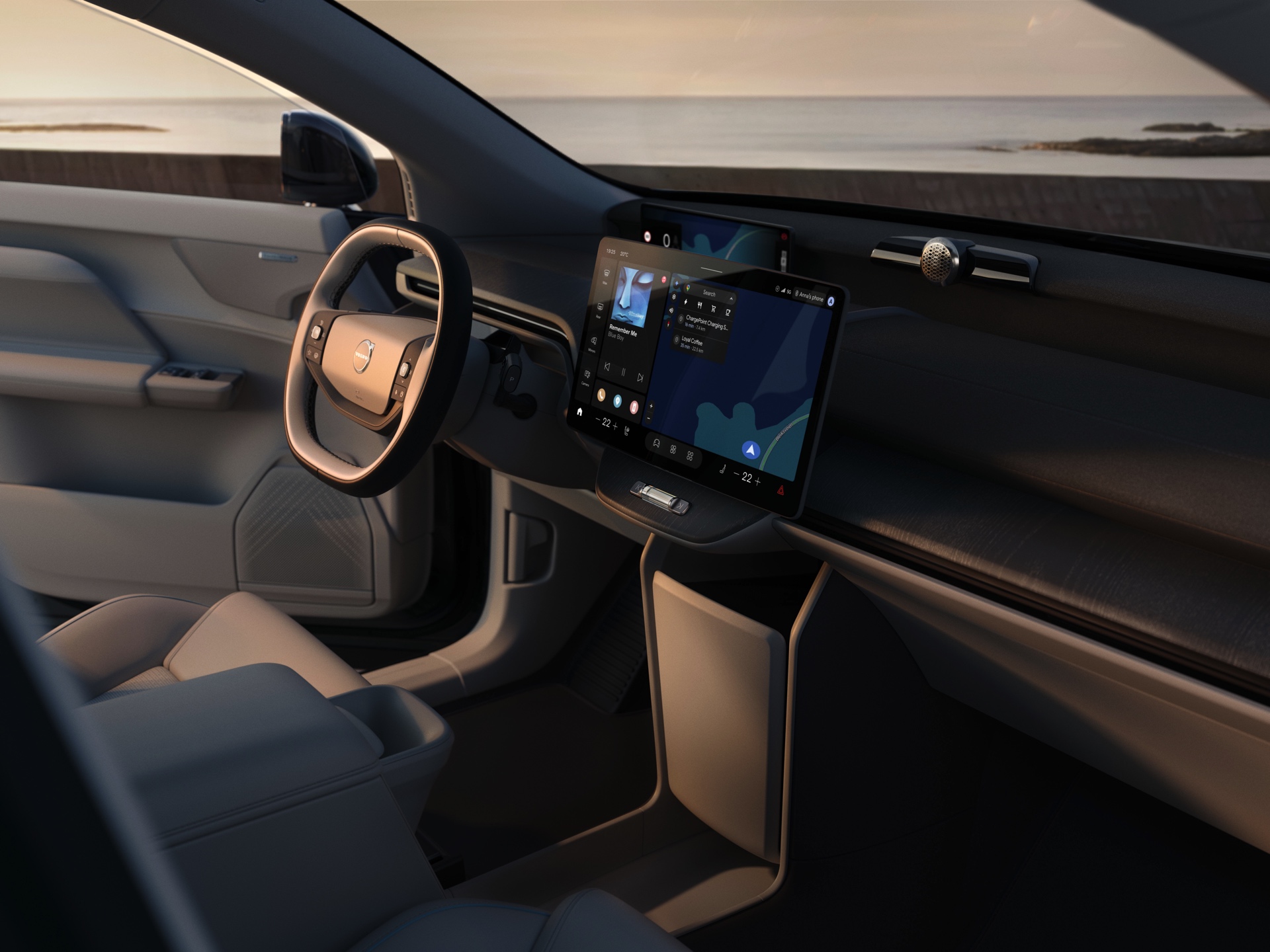 Im Innenraum setzt der EX60 Volvo-typisch auf ein sehr aufgeräumtes Cockpit mit klarer Struktur und relativ wenigen Elementen, gleiches lässt sich allerdings auch über den Innenraum der Neuen Klasse sagen. Zwar gibt es auch im Volvo zwei Displays, das kleinere hinter dem Lenkrad ist aber nicht ansatzweise mit dem Panoramic Vision Display des BMW iX3 vergleichbar. Auch ein Head-up-Display scheint im Volvo nach aktuellem Stand zu fehlen, zumindest gibt es bisher keine Hinweise auf ein entsprechendes Angebot.