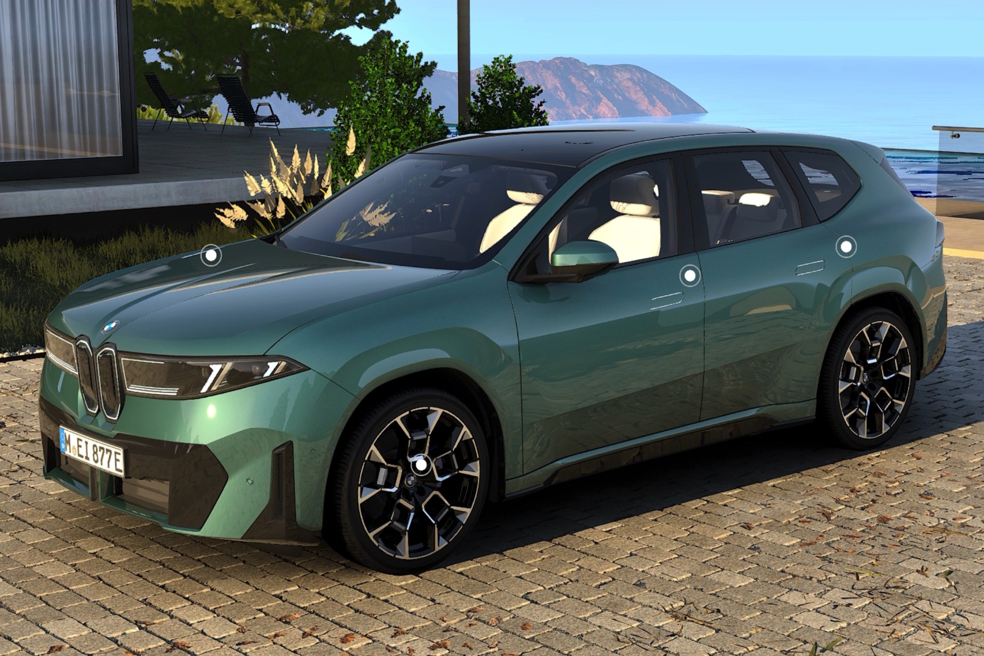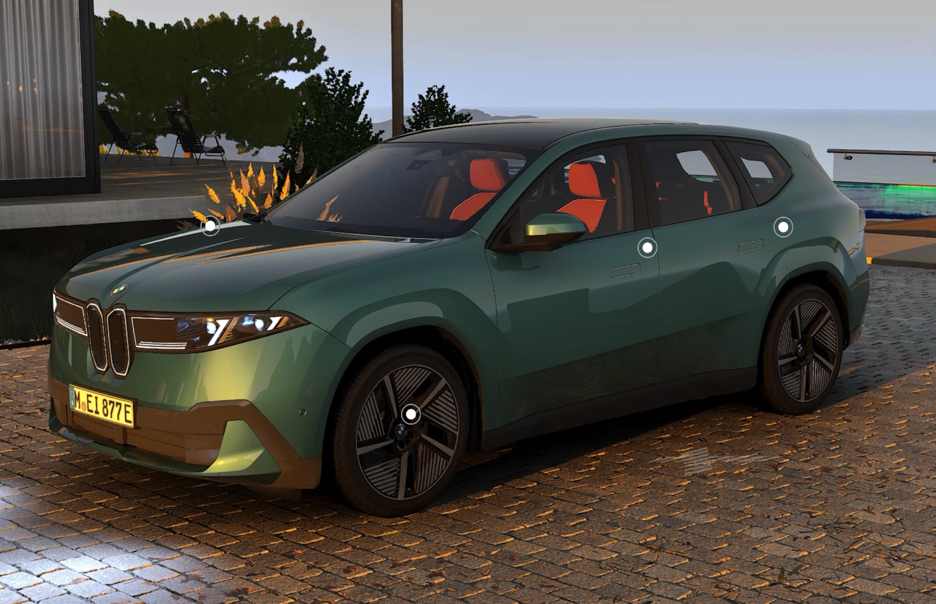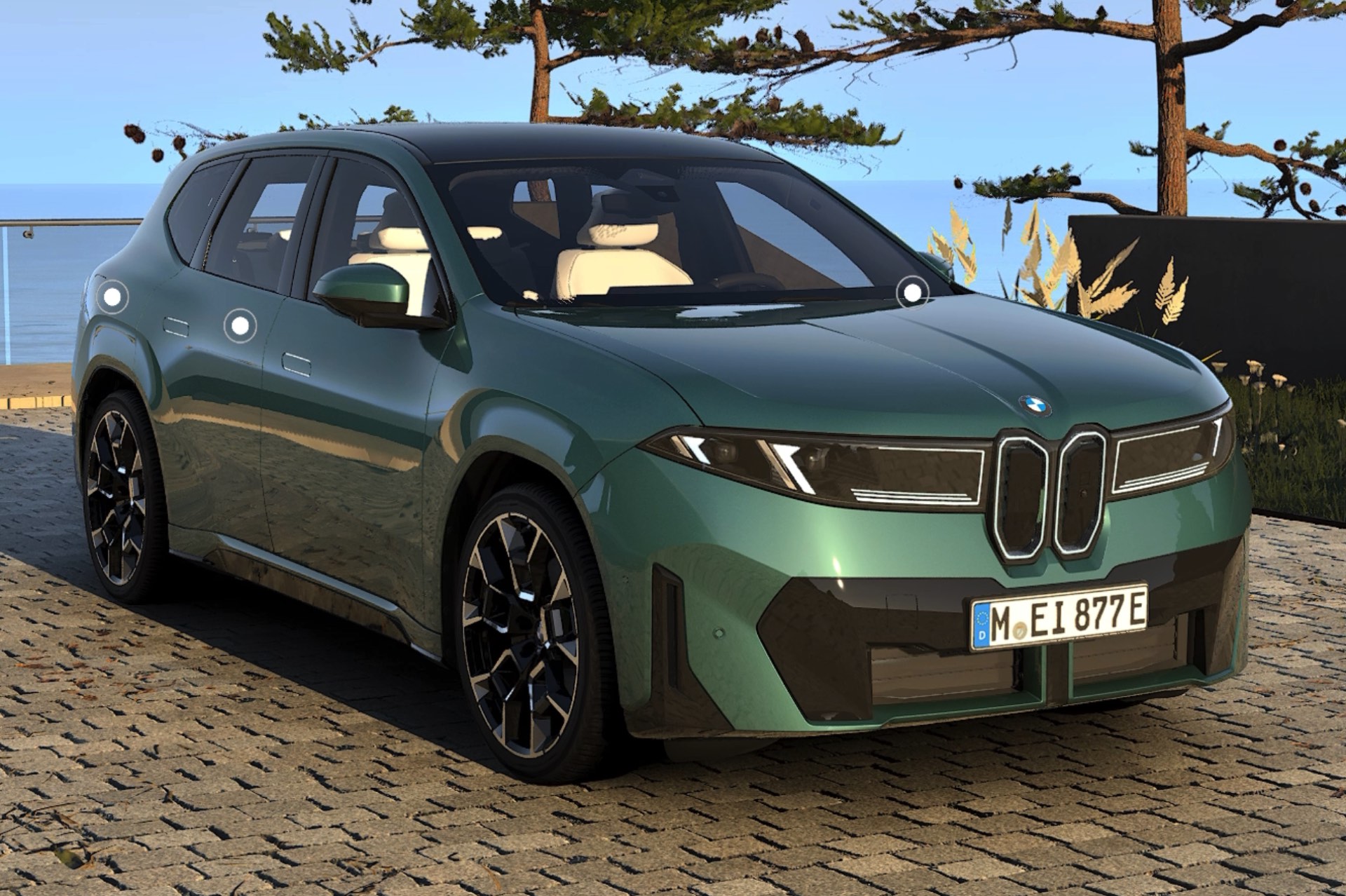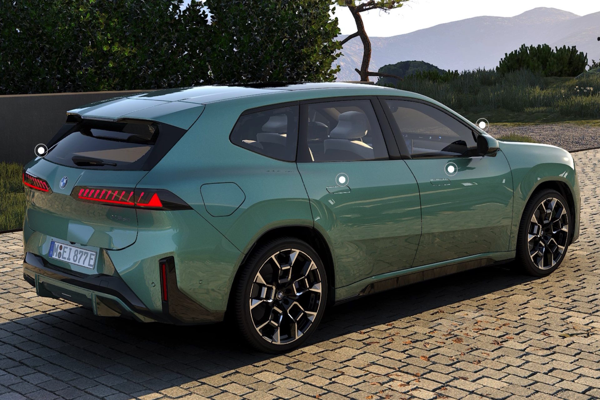 Mit Eucalyptus Green Metallic ist ab sofort eine zusätzliche Farbe für den BMW iX3 (NA5) bestellbar, die komplett neu für die Marke ist. Während erste Live-Eindrücke noch auf sich warten lassen, liefert uns die neue 3D-Visualisierung des Online-Konfigurators auf bmw.de zumindest schon einen ersten Vorgeschmack von der Wirkung der neuen Farbe. Im 3D-Bereich des Konfigurations-Tools kann jeder Interessent sein individuell gestaltetes Fahrzeug in einer realistischen Umgebung betrachten und dabei nicht nur frei zwischen verschiedenen Perspektiven wählen, sondern mit einem Schieberegler auch unterschiedliche Licht-Stimmungen simulieren.