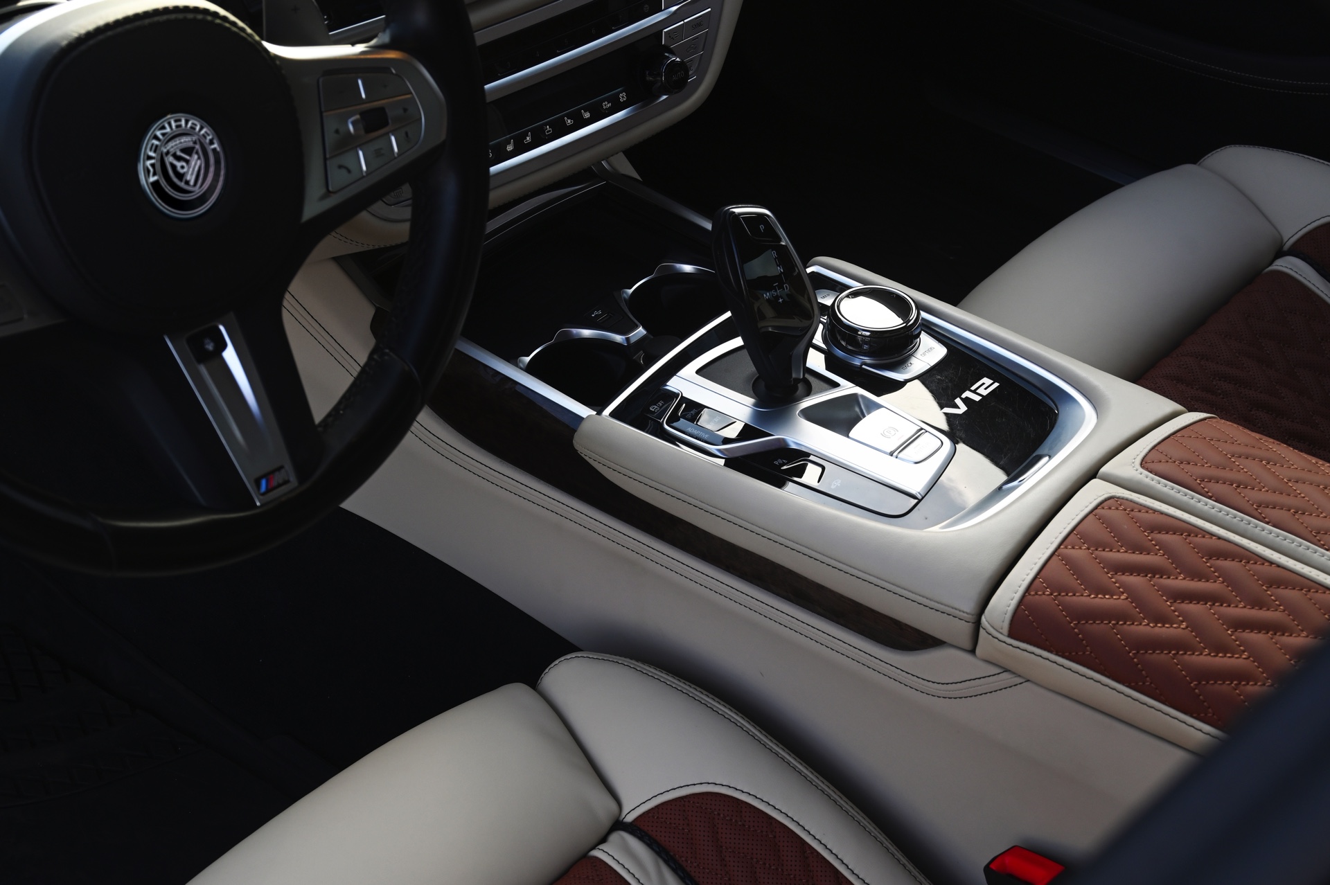 Das Resultat der Überarbeitung sind mehr als 100 zusätzliche Pferdestärken, denn dem intern als N74 oder noch präziser N74B66TÜ bekannten V12-Biturbo mit 6,6 Liter Hubraum wird bei Manhart zu imposanten 711 PS und 1.050 Newtonmeter Drehmoment verholfen. Möglich wird die Leistungssteigerung mit Hilfe von Sport-Downpipes mit 200-Zellen-Katalysatoren von HJS, einer Edelstahl-Abgasanlage mit Klappensteuerung und natürlich der obligatorischen Software-Anpassung für die Motorsteuerung. Dass im Zuge dieser Maßnahmen auch der Sound noch prägnanter wird und der V12-7er einen Teil seiner werksseitig auferlegten Zurückhaltung ablegt, dürfte niemanden überraschen.