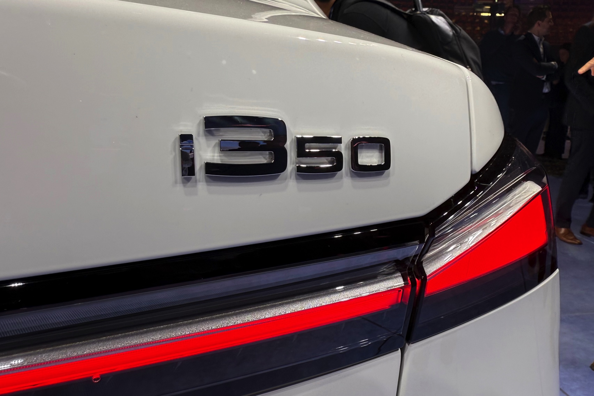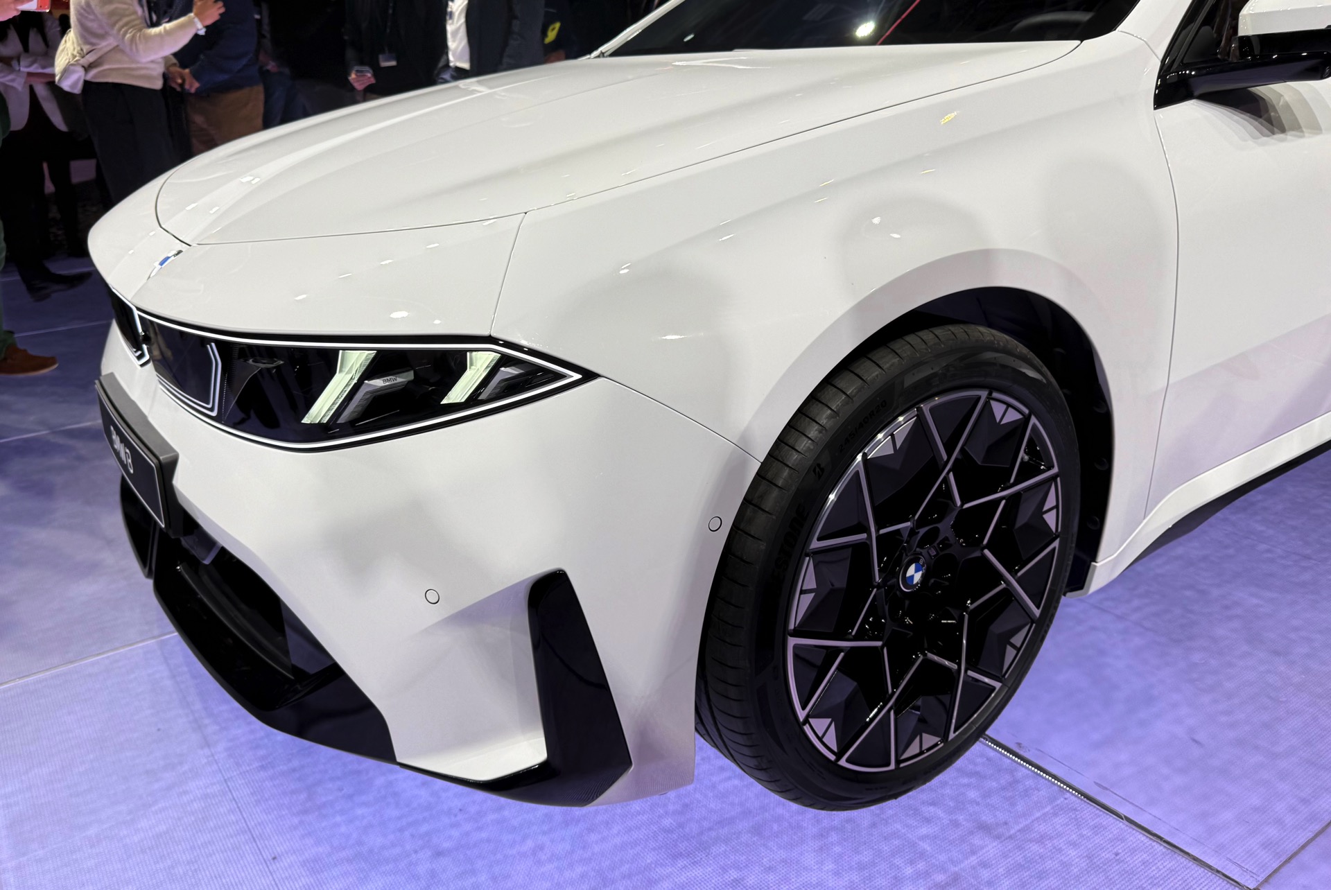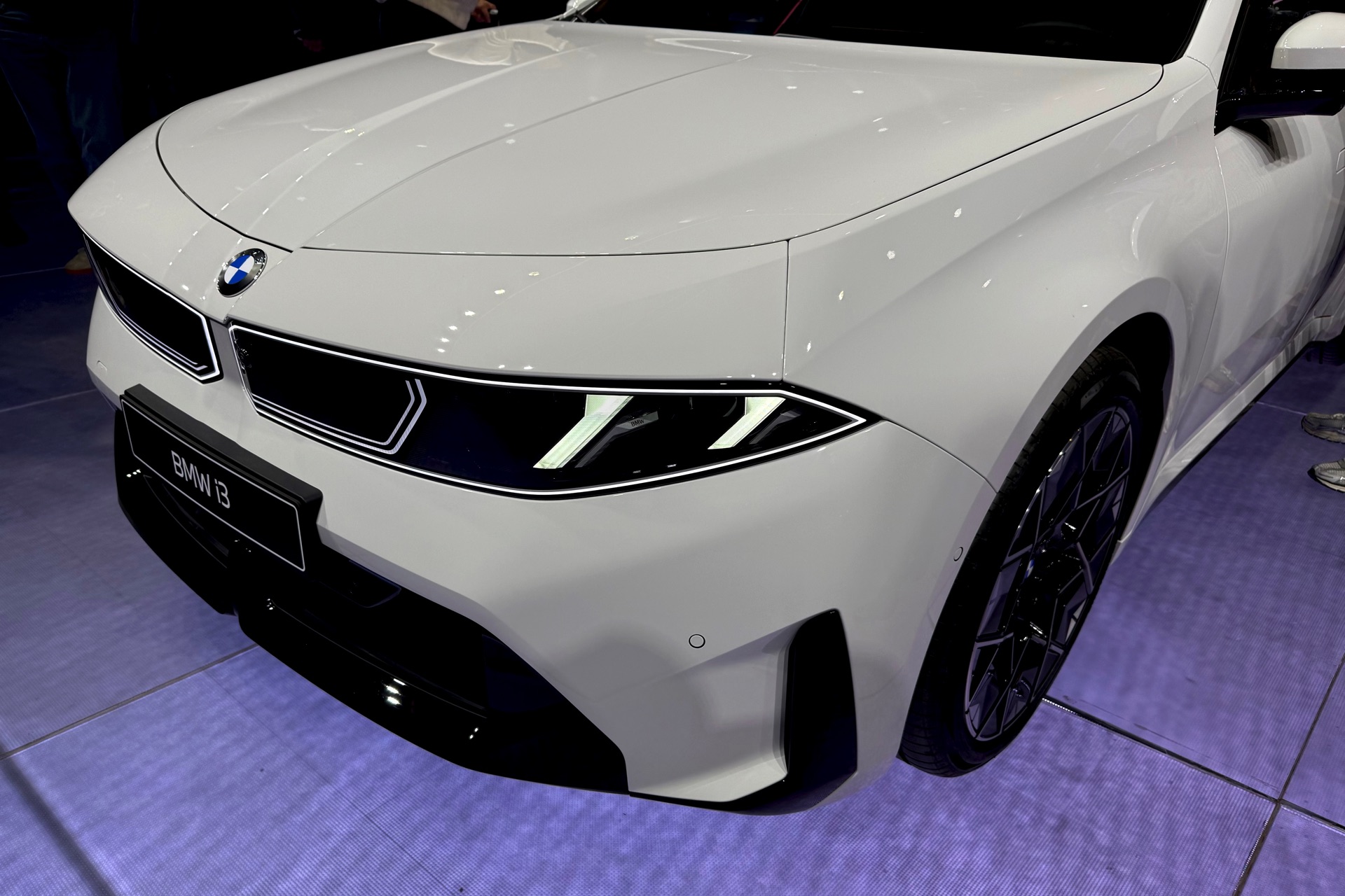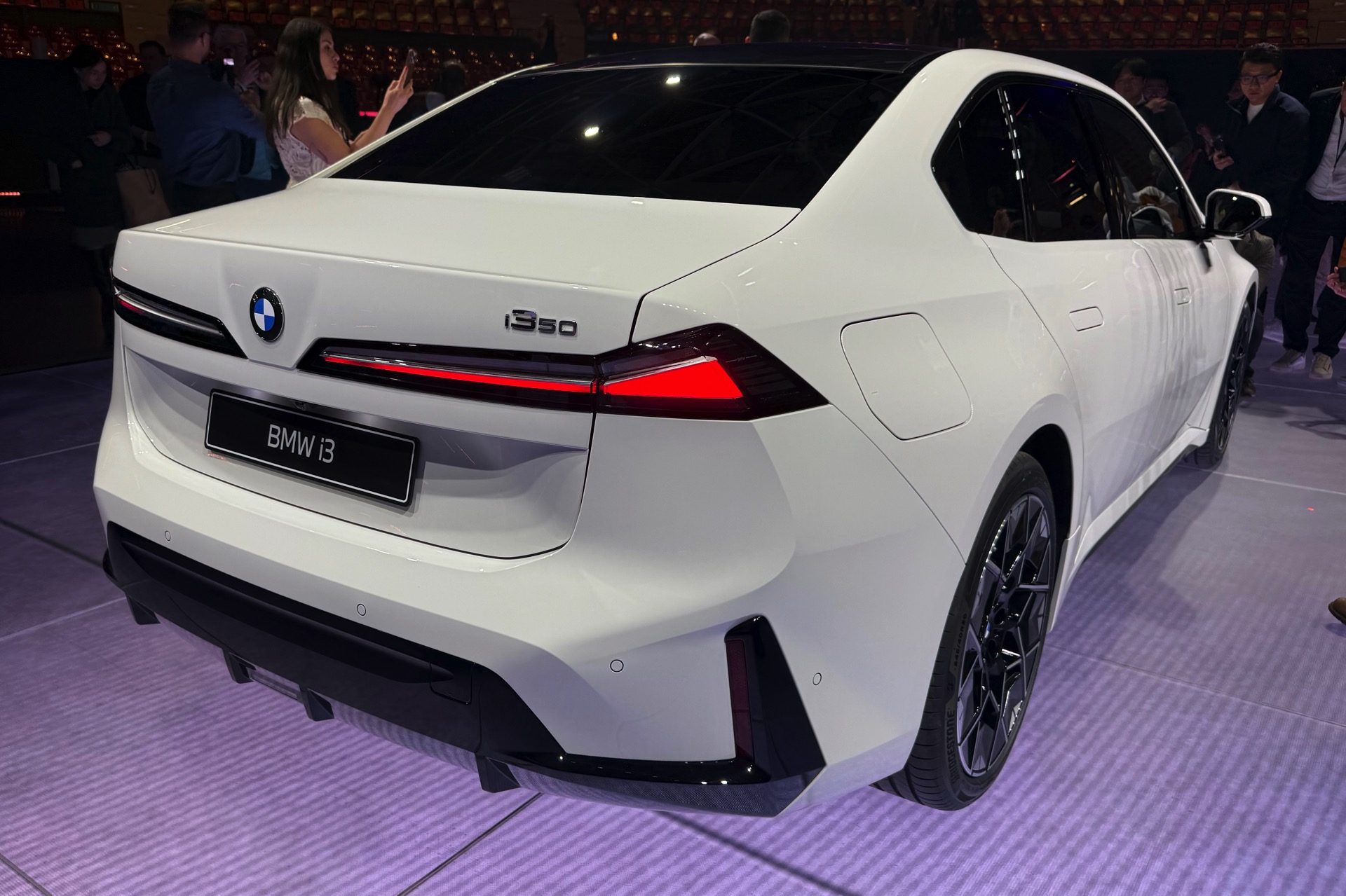 Bei der Weltpremiere des neuen BMW i3 (NA0) war die Neue Klasse im 3er-Format nicht nur in der Launchfarbe Le Castellet Blau zu sehen, sondern wurde auch erstmals in Weiß gezeigt. Unsere Live-Fotos aus dem BMW Park München zeigen den Elektro-3er mit M Sport-Paket und Lackierung in Alpinweiß, außerdem trägt er die 21 Zoll großen Aerodynamikräder im Styling 1067 M. Wie der i350-Schriftzug am Heck verrät, handelt es sich um die vom iX3 bekannte Antriebsvariante mit einer Systemleistung von 469 PS und 645 Newtonmeter Drehmoment, die den i3 50 xDrive in unter fünf Sekunden von 0 auf 100 km/h beschleunigen kann.