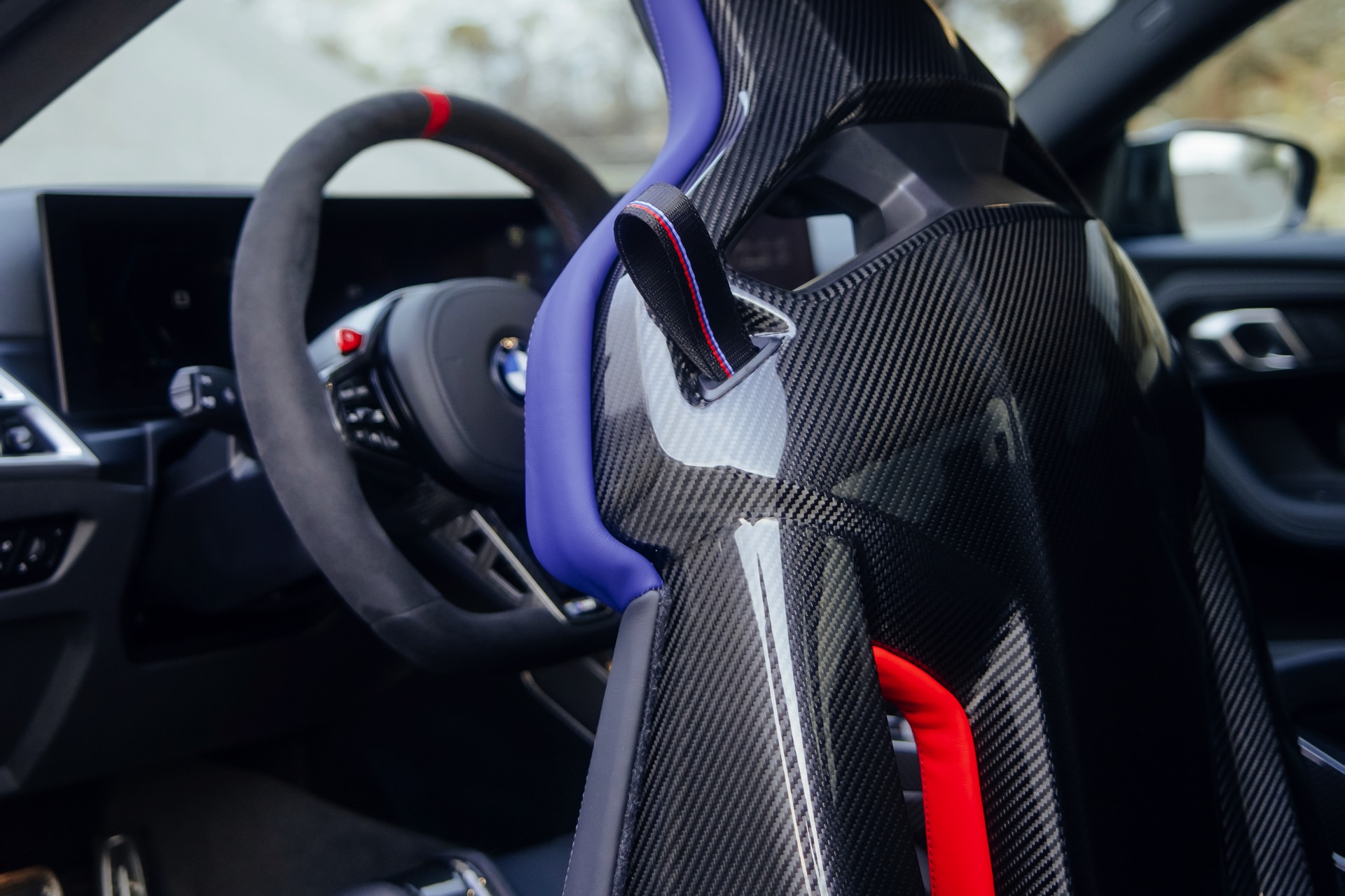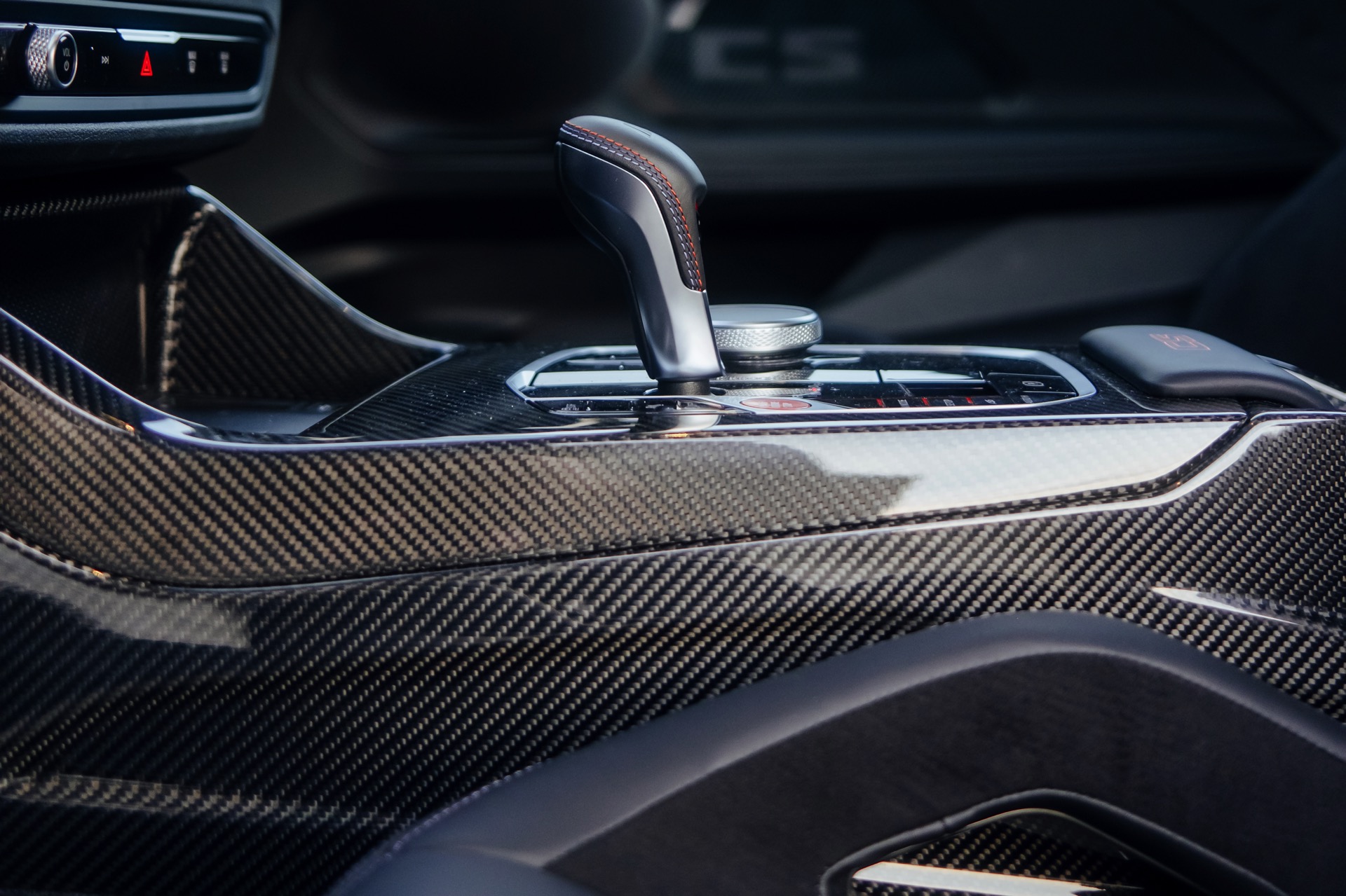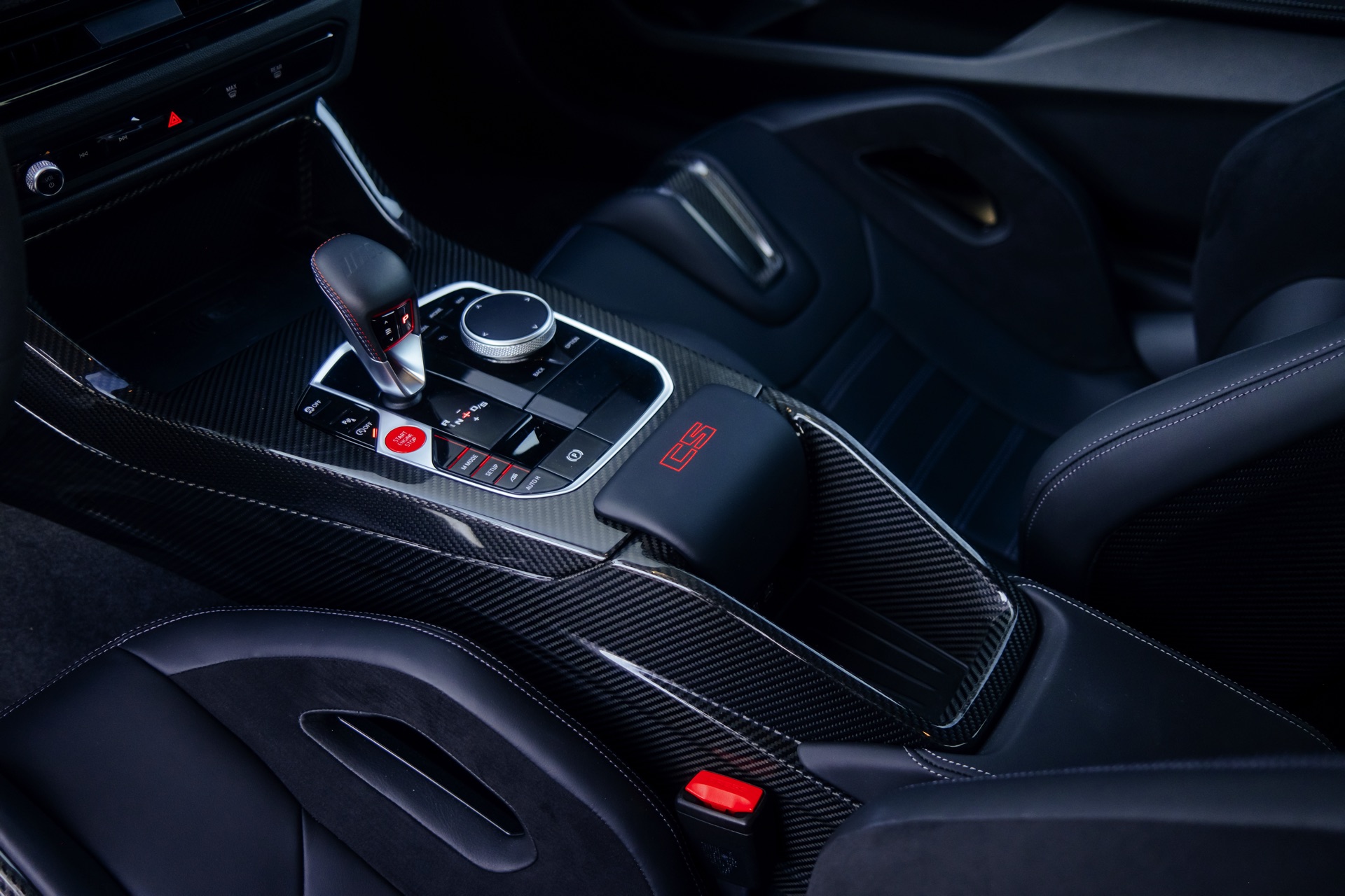 Im Interieur spielt Carbon ebenfalls eine Schlüsselrolle: Die CS-spezifische Mittelkonsole ist ebenso in Sicht-Carbon ausgeführt wie die Rückenblende und weitere Details der M Carbon-Schalensitze, auch die Interieurleisten ‘Carbon Fibre’ tragen zur Motorsport-Atmosphäre bei. Der Fahrer darf sich außerdem am Alcantara-Lenkrad mit roter 12-Uhr-Markierung erfreuen.