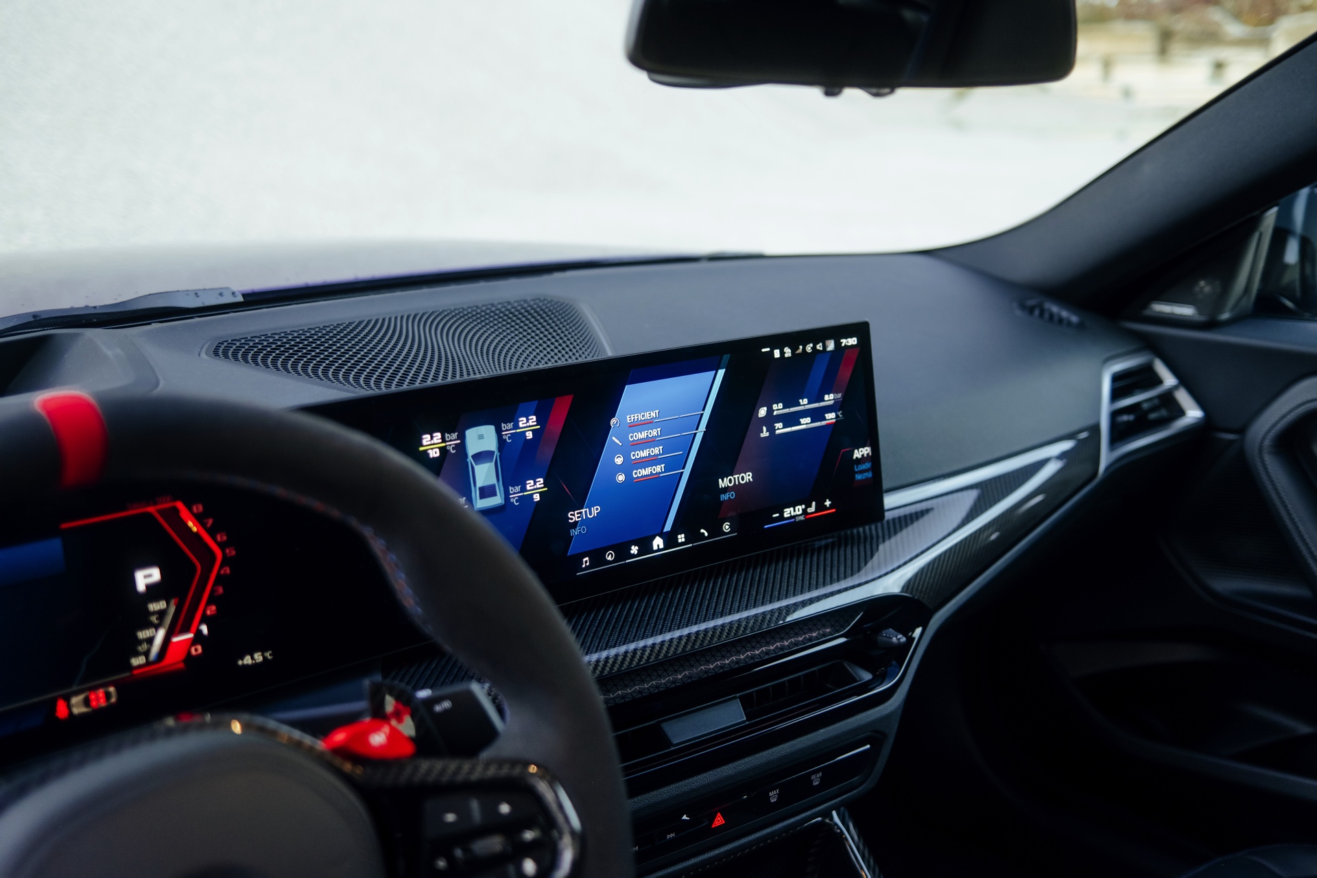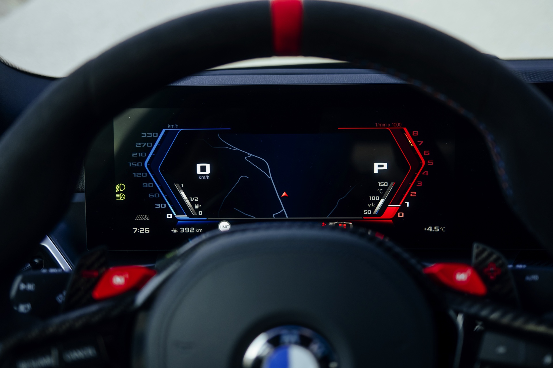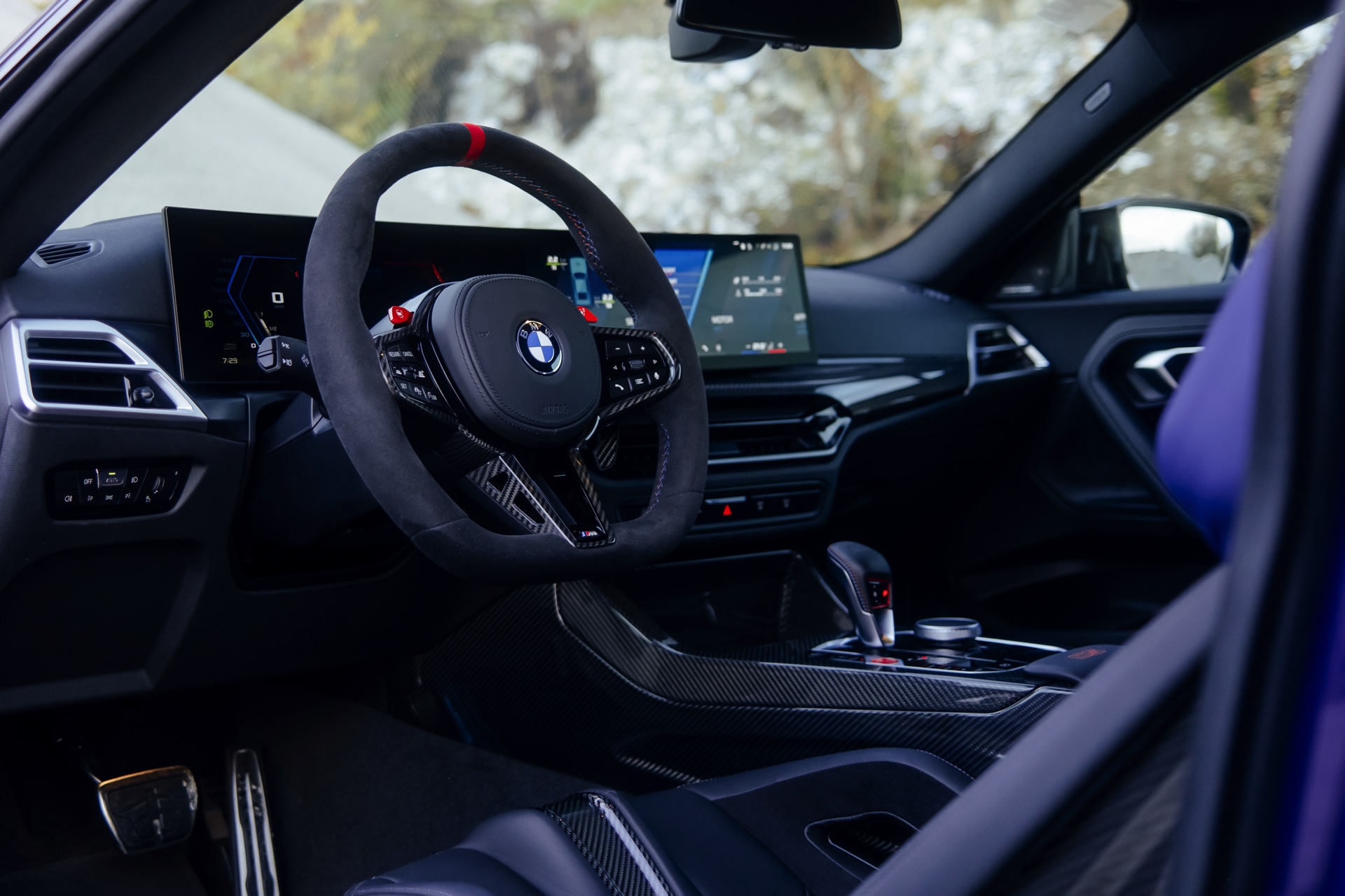 Im Interieur spielt Carbon ebenfalls eine Schlüsselrolle: Die CS-spezifische Mittelkonsole ist ebenso in Sicht-Carbon ausgeführt wie die Rückenblende und weitere Details der M Carbon-Schalensitze, auch die Interieurleisten ‘Carbon Fibre’ tragen zur Motorsport-Atmosphäre bei. Der Fahrer darf sich außerdem am Alcantara-Lenkrad mit roter 12-Uhr-Markierung erfreuen.