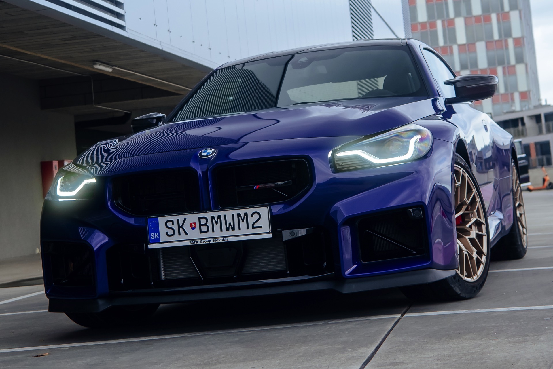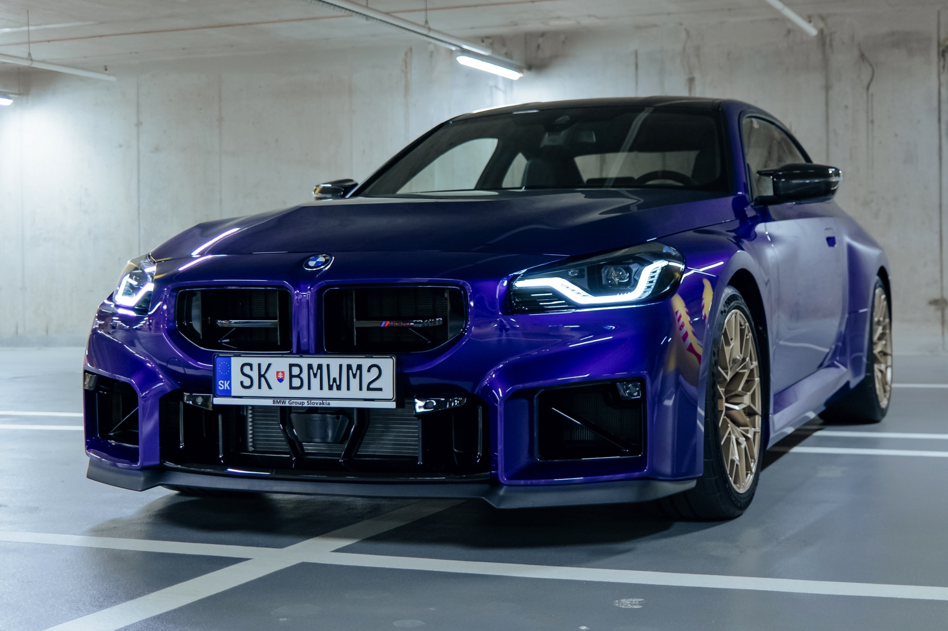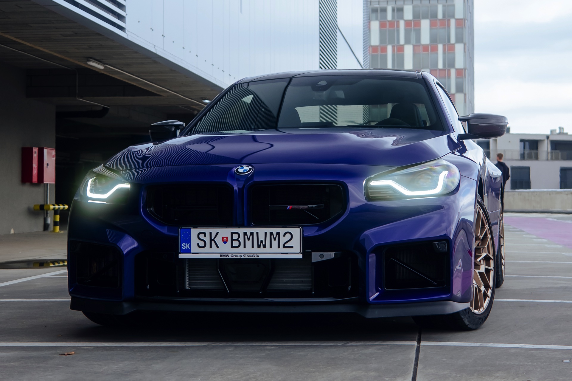 Der BMW M2 CS zündet nicht nur technisch ein Feuerwerk, auch optisch hat das Topmodell der Generation G87 einige spektakuläre Details zu bieten. Auf einer Serie neuer Fotos aus der Slowakei sehen wir den 530 PS starken Über-M2, der mit einer Zeit von 7:25 Minuten den notariell beglaubigten Nordschleifen-Rekord für den bisher schnellsten Kompaktsportler mit Straßenzulassung hält und damit auf dem Performance-Niveau eines Ferrari 488 GTB oder auch eines 812 Superfast unterwegs ist, erneut in seiner exklusiven Launch-Farbe Velvet Blue Metallic. Die besondere Lackierung wird dabei in verschiedenen Umgebungen und Lichtstimmungen gezeigt, sodass die unterschiedlichen Wirkungen der Farbe zumindest angedeutet werden.