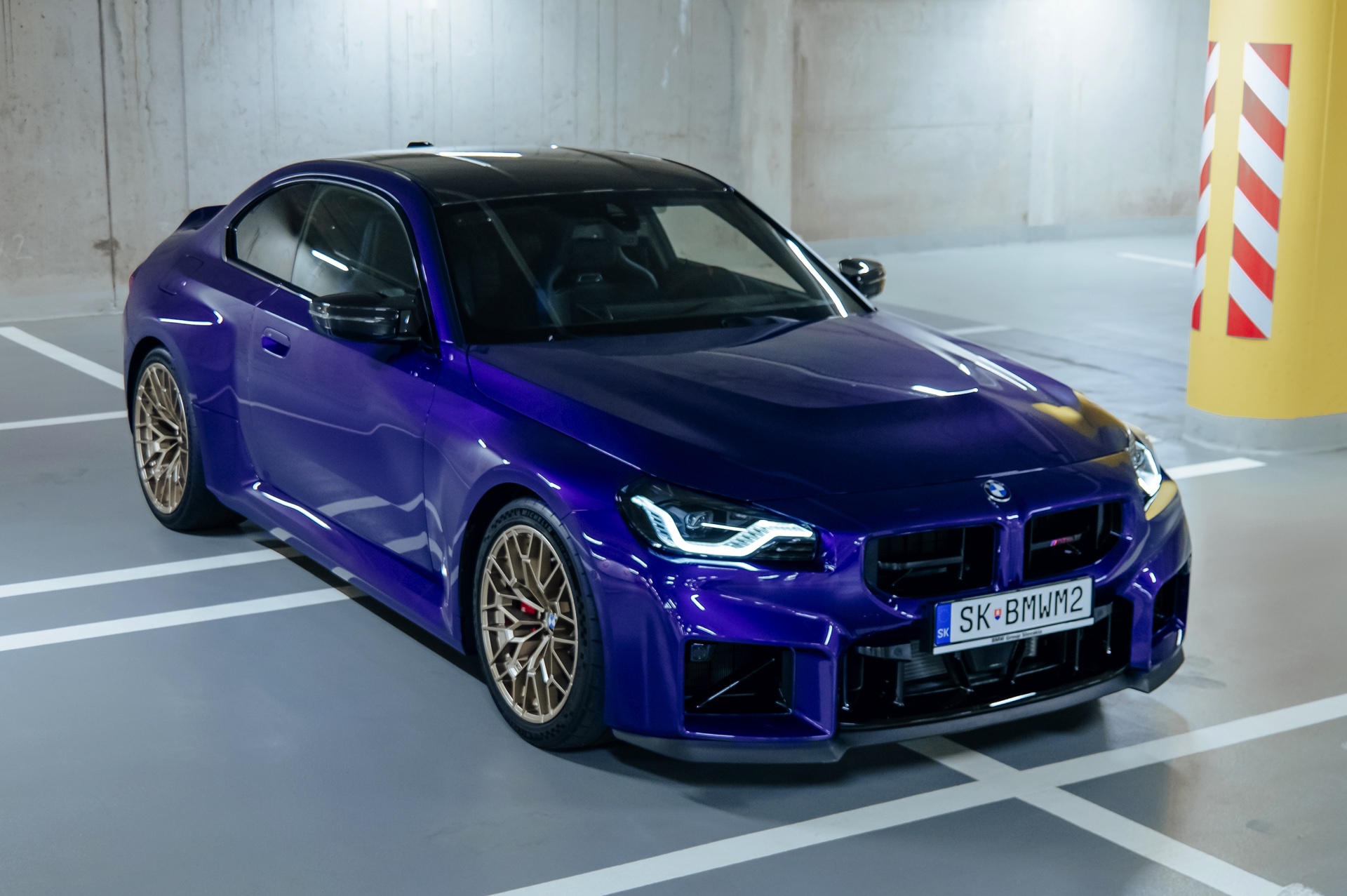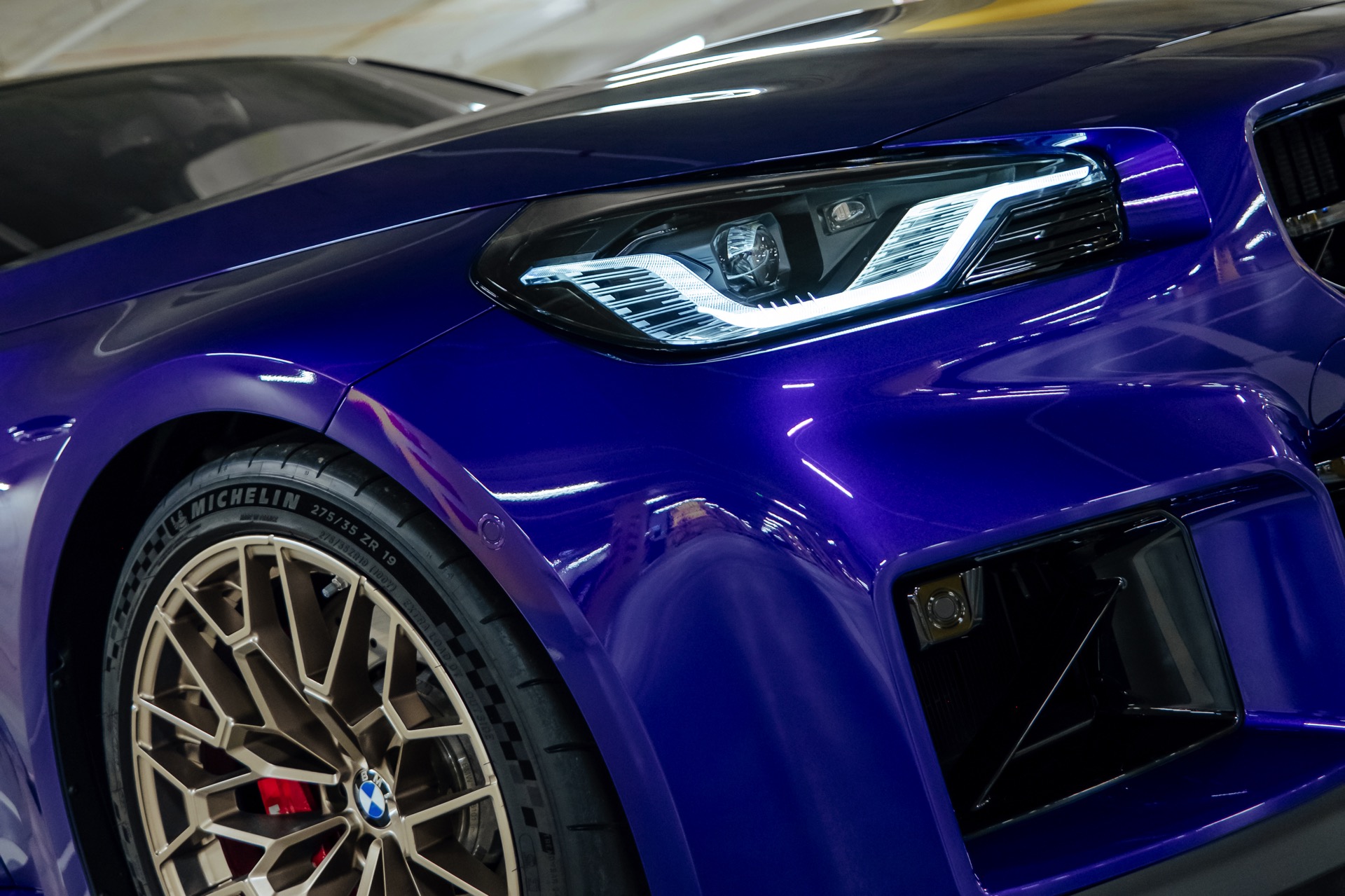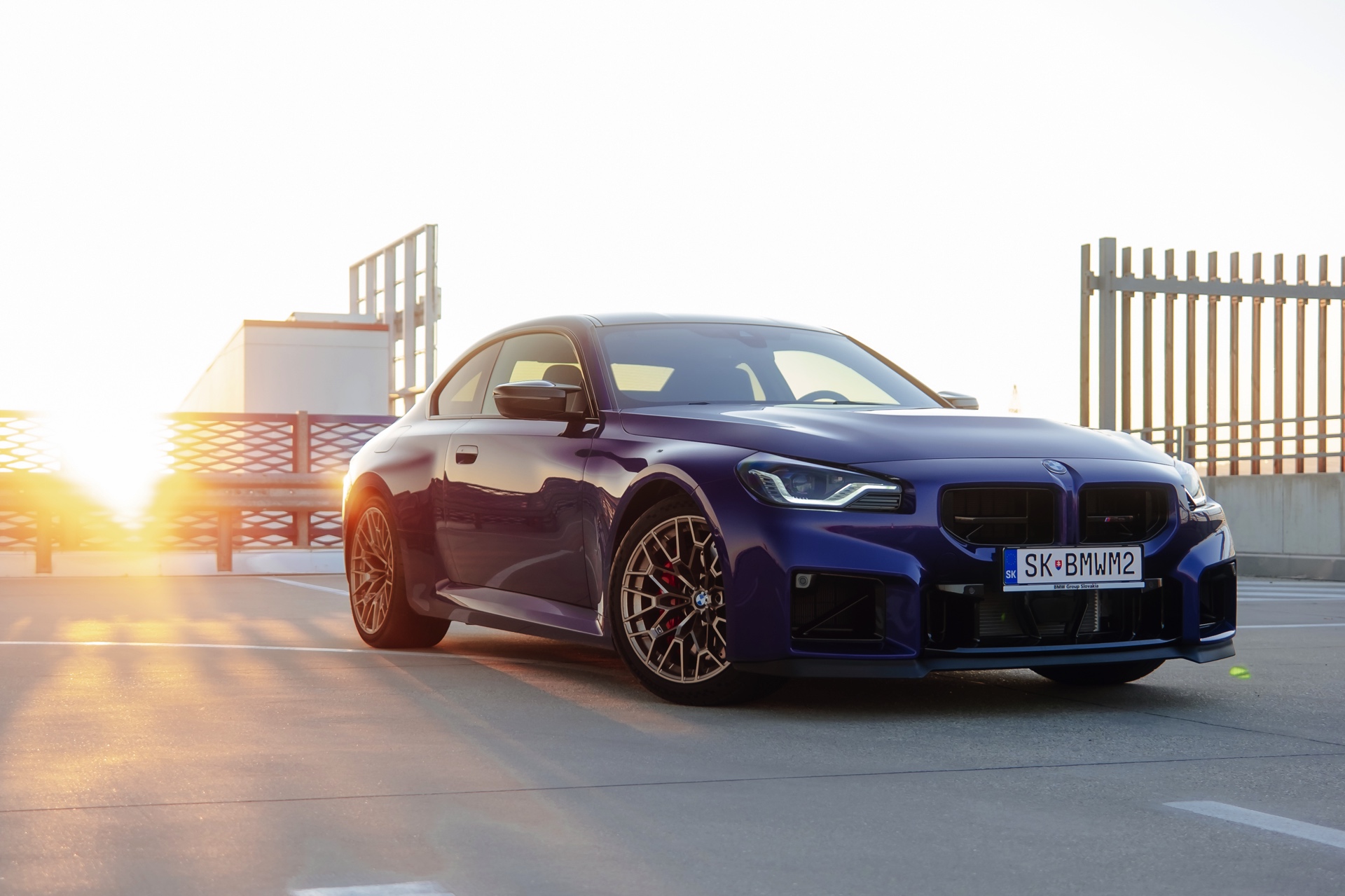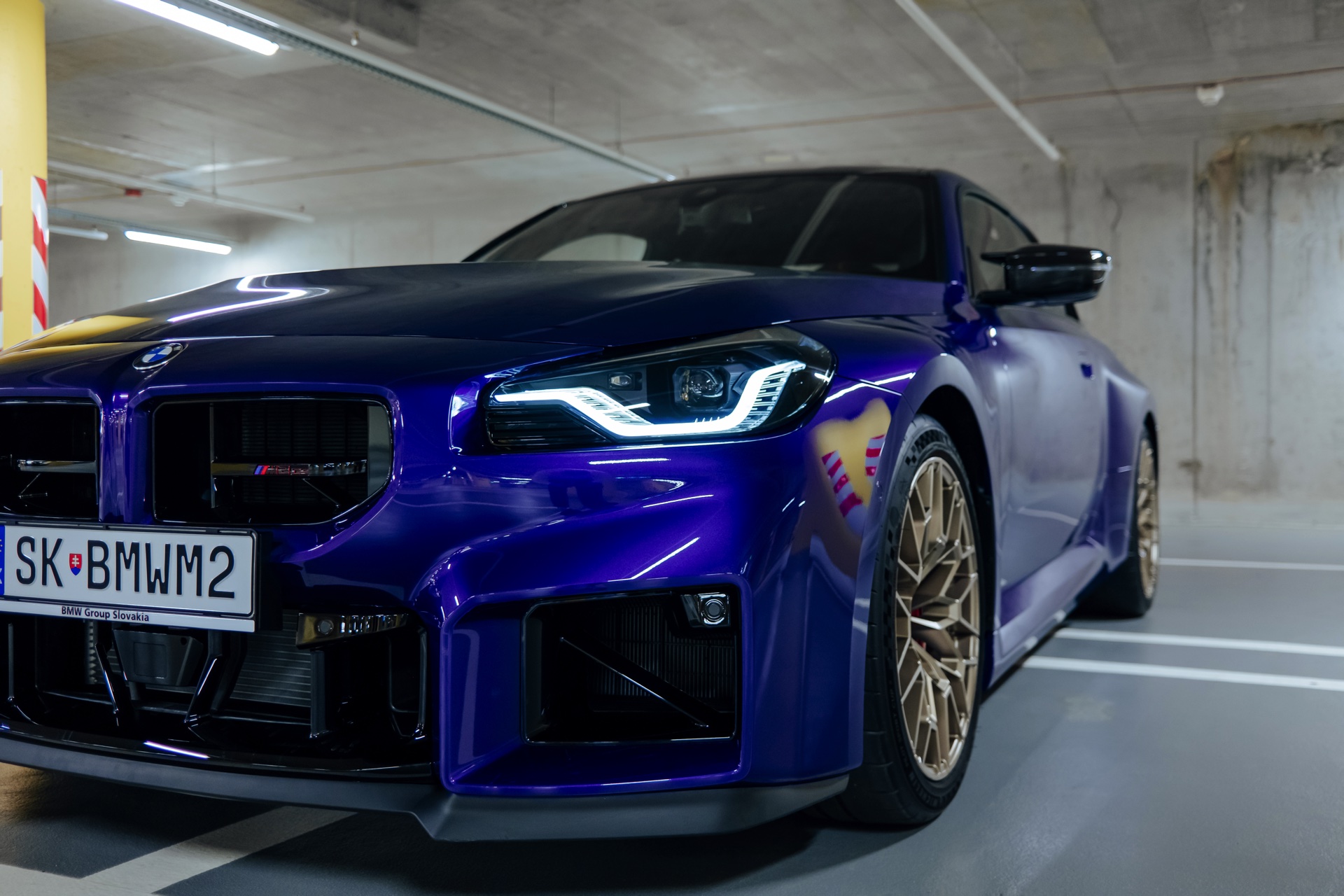 Der BMW M2 CS zündet nicht nur technisch ein Feuerwerk, auch optisch hat das Topmodell der Generation G87 einige spektakuläre Details zu bieten. Auf einer Serie neuer Fotos aus der Slowakei sehen wir den 530 PS starken Über-M2, der mit einer Zeit von 7:25 Minuten den notariell beglaubigten Nordschleifen-Rekord für den bisher schnellsten Kompaktsportler mit Straßenzulassung hält und damit auf dem Performance-Niveau eines Ferrari 488 GTB oder auch eines 812 Superfast unterwegs ist, erneut in seiner exklusiven Launch-Farbe Velvet Blue Metallic. Die besondere Lackierung wird dabei in verschiedenen Umgebungen und Lichtstimmungen gezeigt, sodass die unterschiedlichen Wirkungen der Farbe zumindest angedeutet werden.
