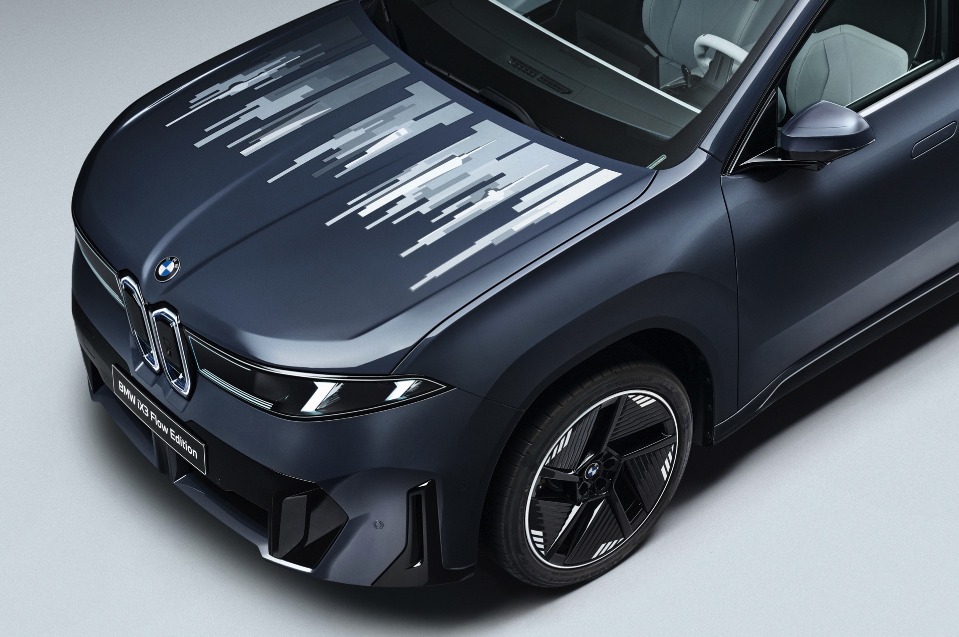 Im Schatten der Weltpremieren von 7er & i7 Facelift sowie der Langversionen von i3 und iX3 zeigt sich auch die nächste Evolution der E-Ink-Technologie: Die BMW iX3 Flow Edition zeigt auf der Motorhaube der Neuen Klasse, dass die bereits vor Jahren im Rahmen der CES erstmals gezeigte Technik inzwischen – laut eigener Aussage von BMW – “serienreif” ist. Die Technik ist inzwischen absolut nahtlos in die Oberfläche der Motorhaube integriert und bietet acht vorprogrammierte Animationen, die der Fahrer auf Knopfdruck starten kann.