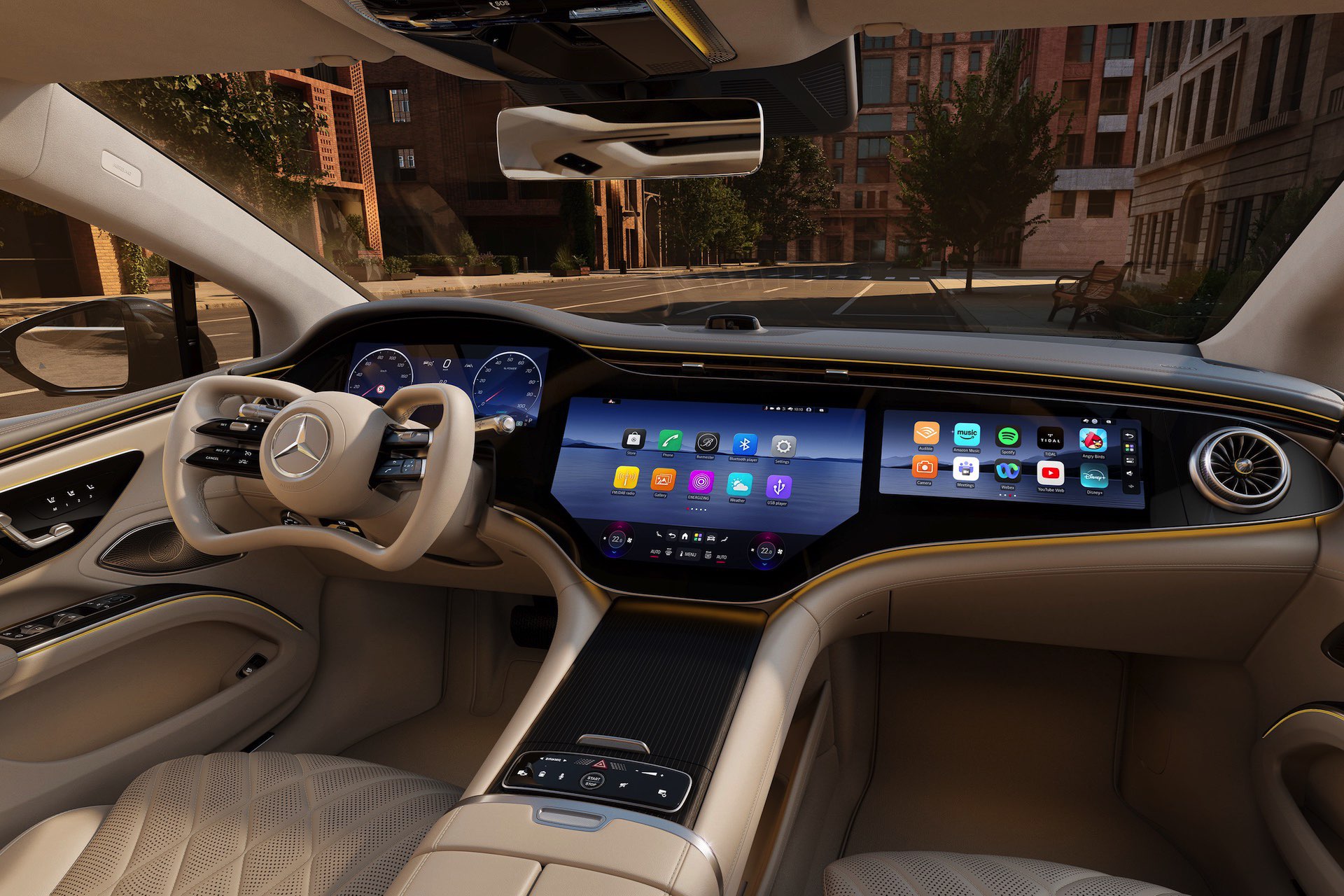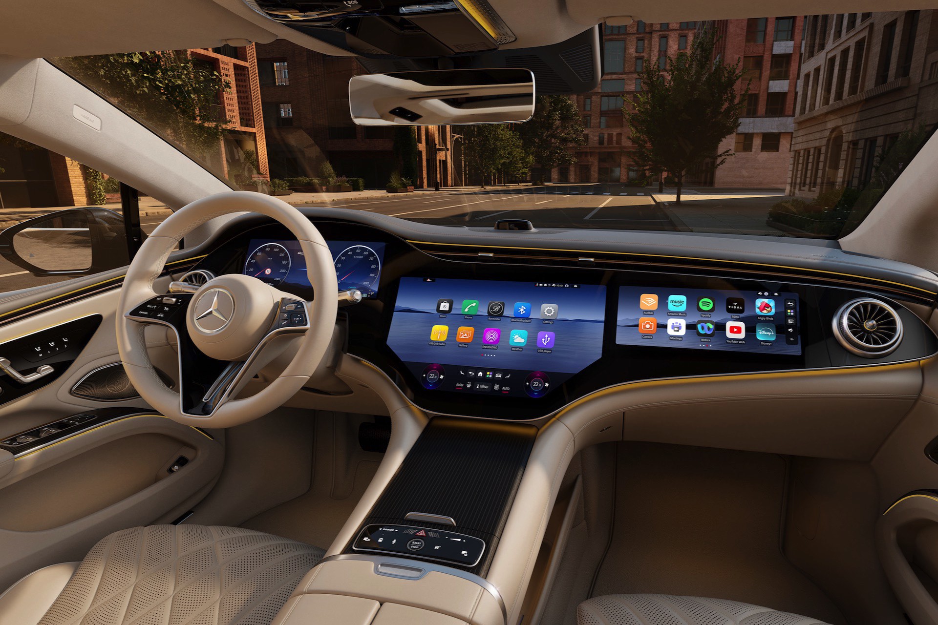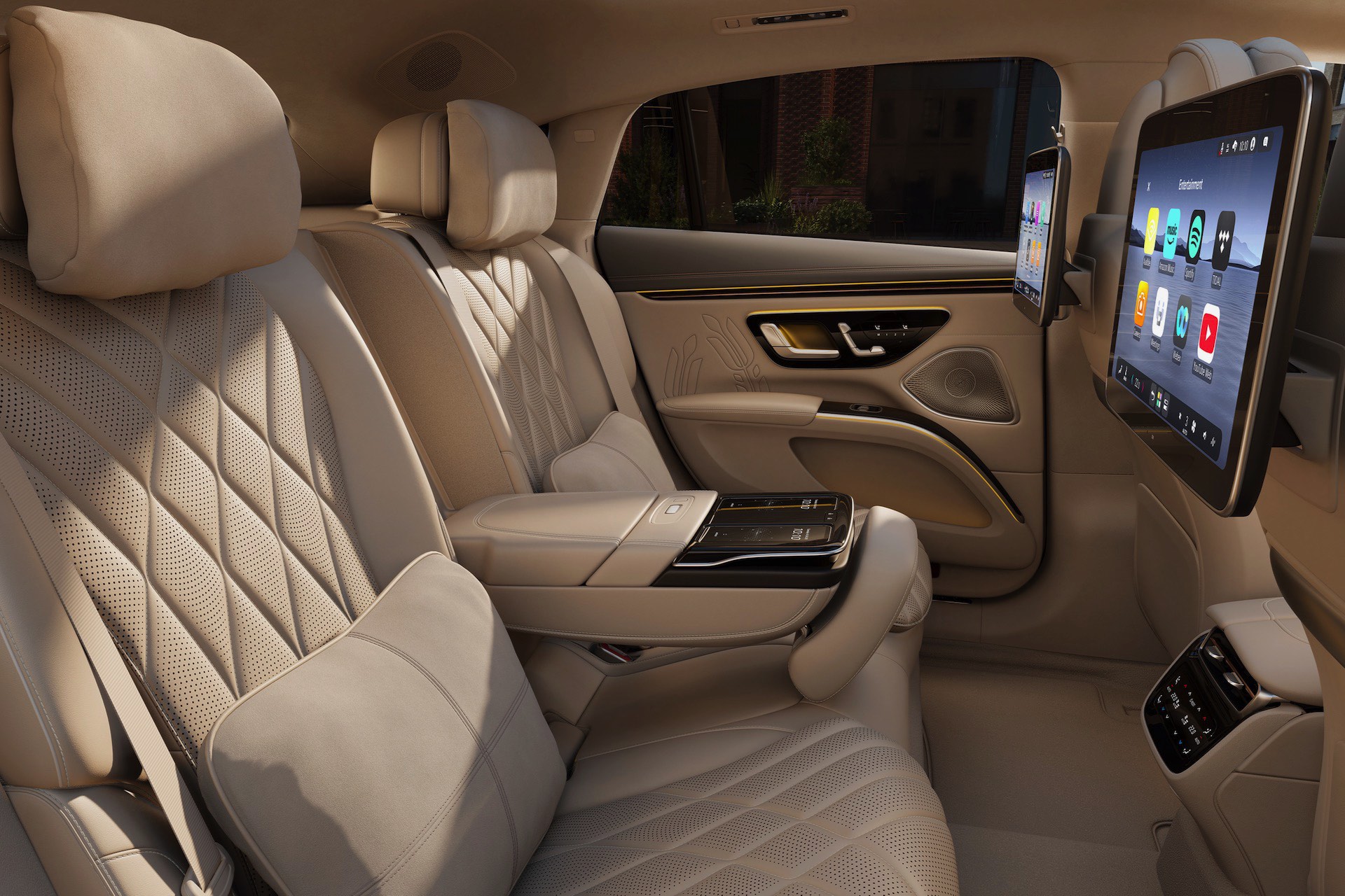 Die entsprechende Investition dürften die Schwaben auch deshalb für notwendig gehalten haben, weil der Mercedes EQS in anderen Disziplinen weiterhin im Nachteil ist: Mit einer Länge von “nur” 5,22 Meter bleibt er volle 17 Zentimeter hinter dem BMW i7 zurück, was gerade auch in Verbindung mit der geschwungeneren Dachlinie zu einem deutlich kleineren Platzangebot im Fond führt – und gerade hier spielt für viele Kunden dieses Segments die entscheidende Musik.